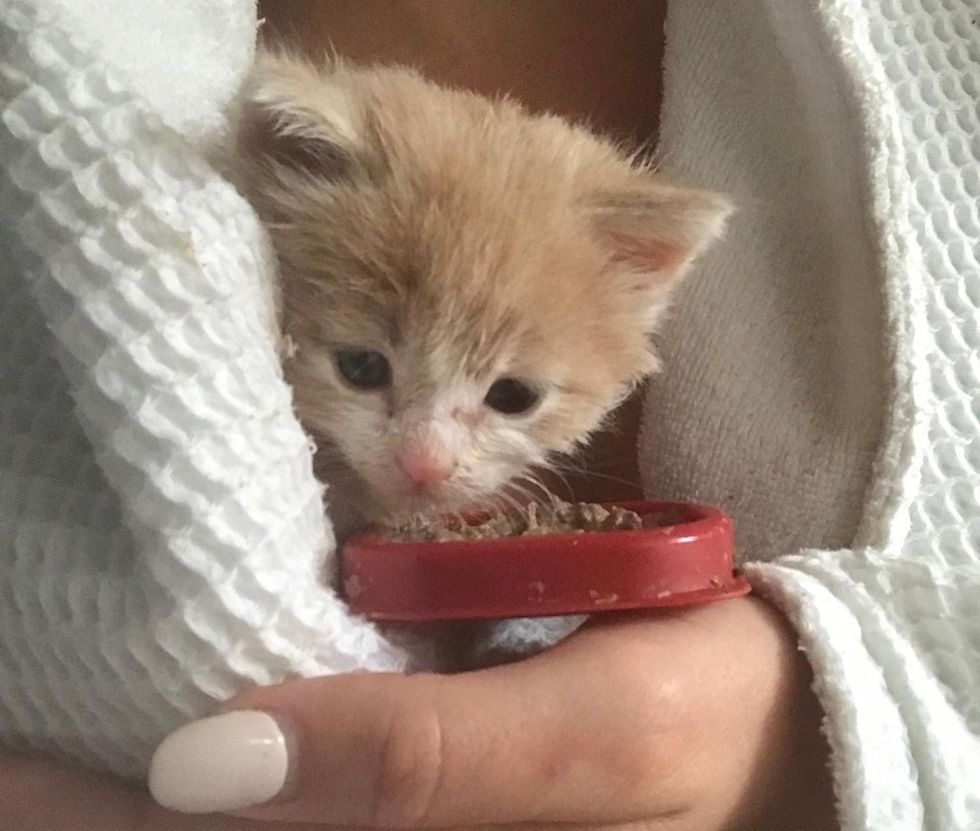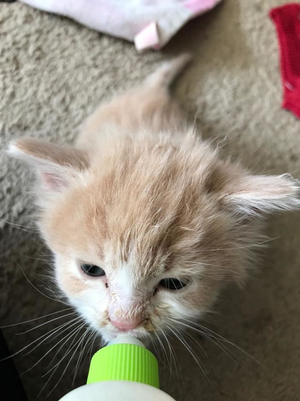 A 3-week-old kitten was brought to San Jose Animal Services. He was all by himself, hungry and in need of foster care. Amber Rose, founder of Saving Grace Rescue, learned about his situation and knew she had to help.