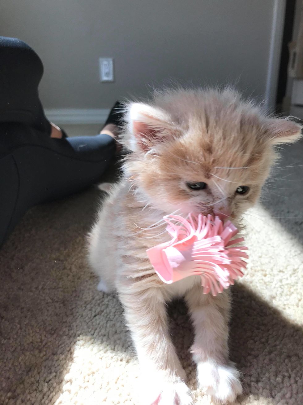 The little ball of fur enjoys taking long walks around the house with his foster mom. Despite being so tiny, he is the bravest kitty, very playful and curious.