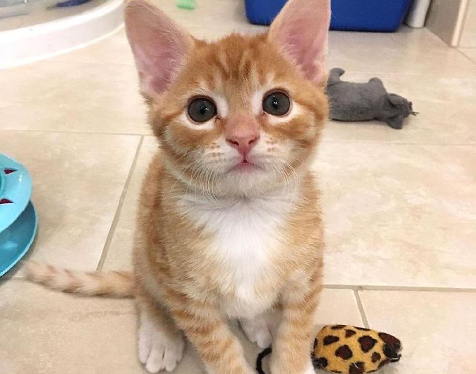 A tiny kitten was born with a rare condition. He let nothing stop him and blossomed into the happiest cat.