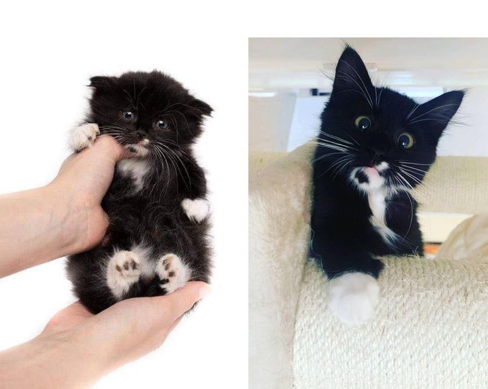 At eight weeks old, he was the size of a 4-week-old kitten. His ears were still folded and his legs were short and stout.