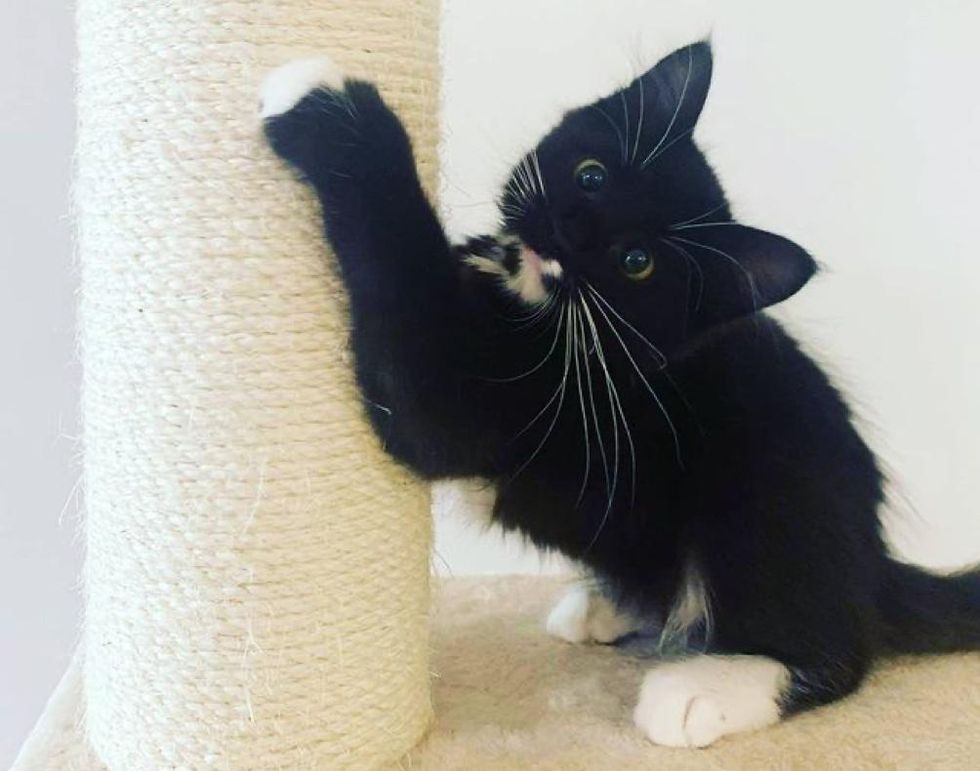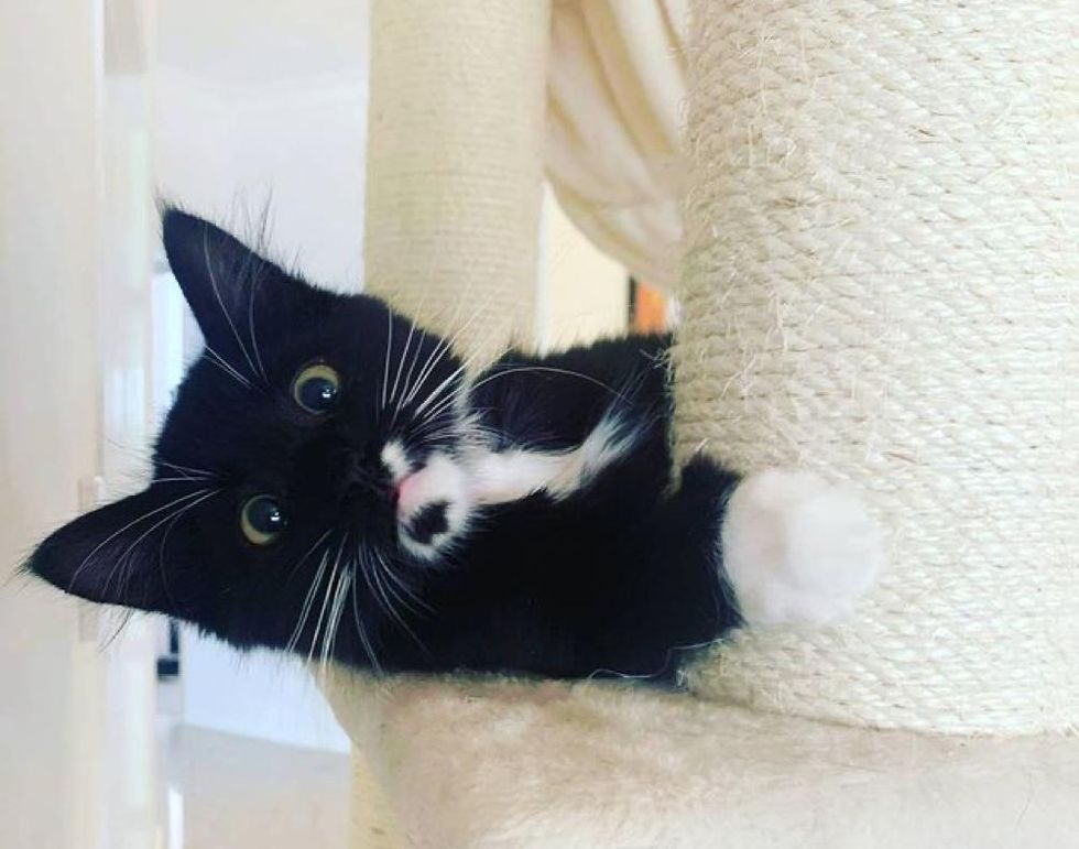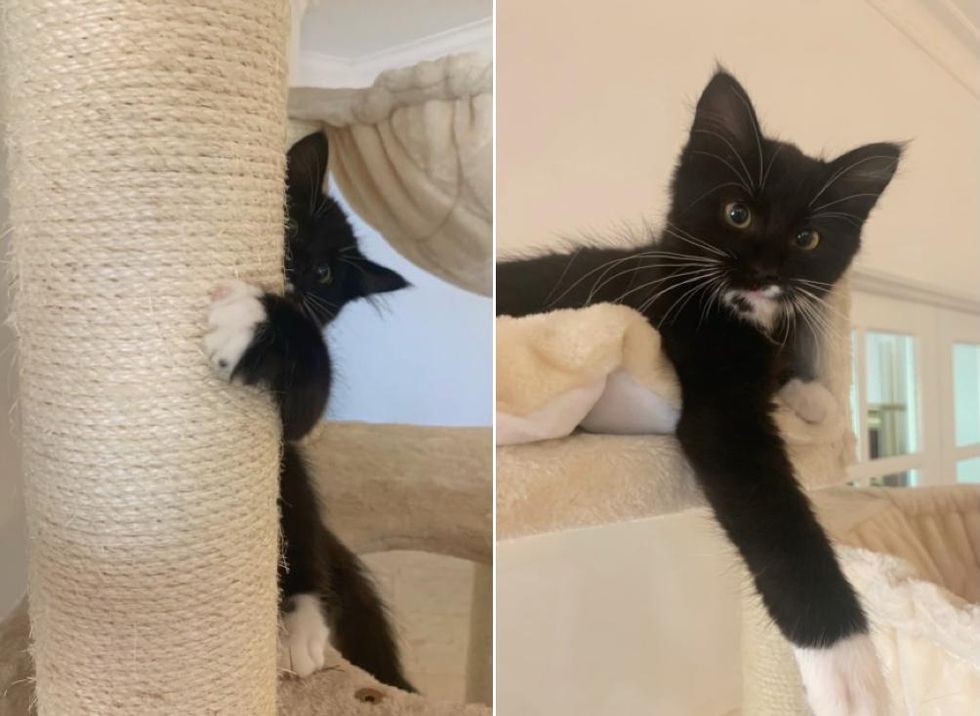 The tuxedo boy is ruling the roost, and his personality is shining through. He can tackle the cat tree like a pro and get all the way to the top effortlessly.
