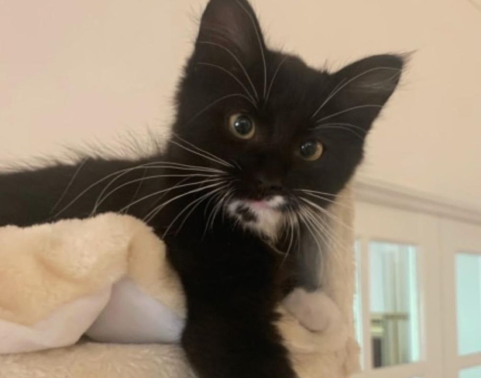 A little tuxedo kitten who was born with a rare condition, is determined to grow big and strong.
