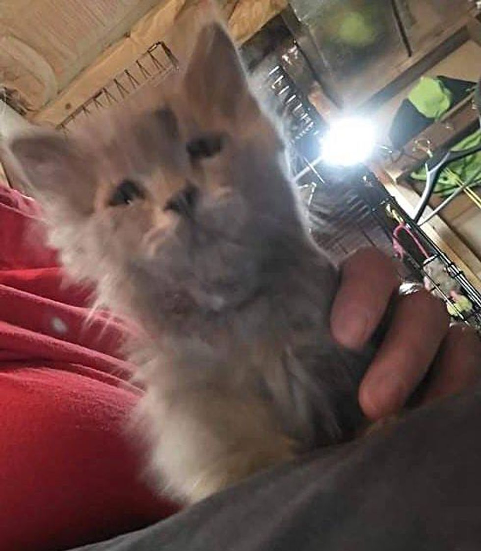 When the kitten arrived and met a volunteer from the sanctuary, he immediately turned his purr motor on full blast. "He was purring nonstop. He gave hugs, rolled over for belly rubs and just loved people."