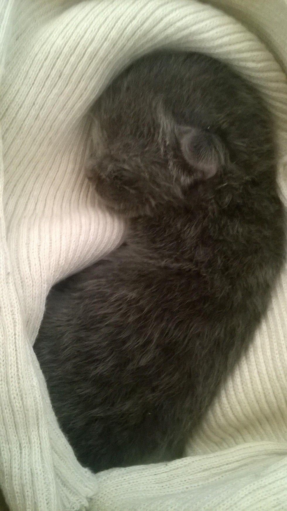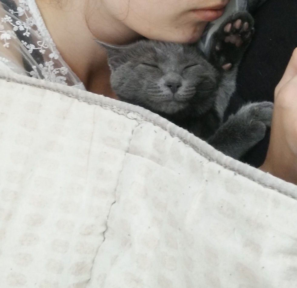 That little smile when she cuddles with her human mom.