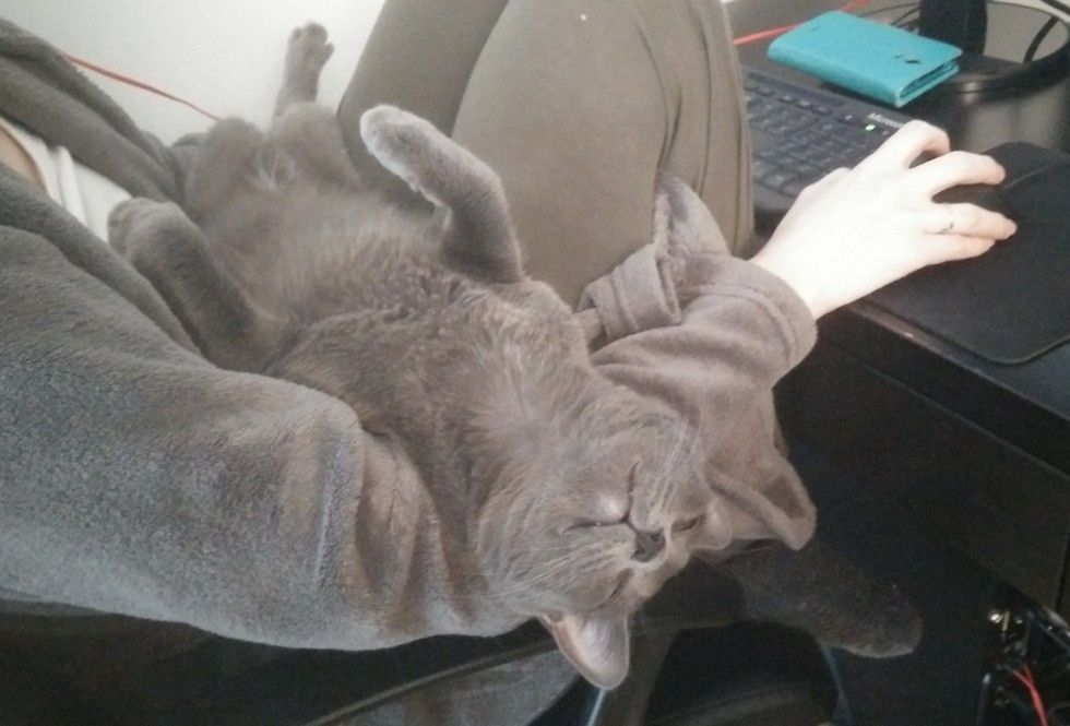 "She is a ball of love! She follows us everywhere even to the bathroom, and will scratch the door until we opent it. She is always on our lap."