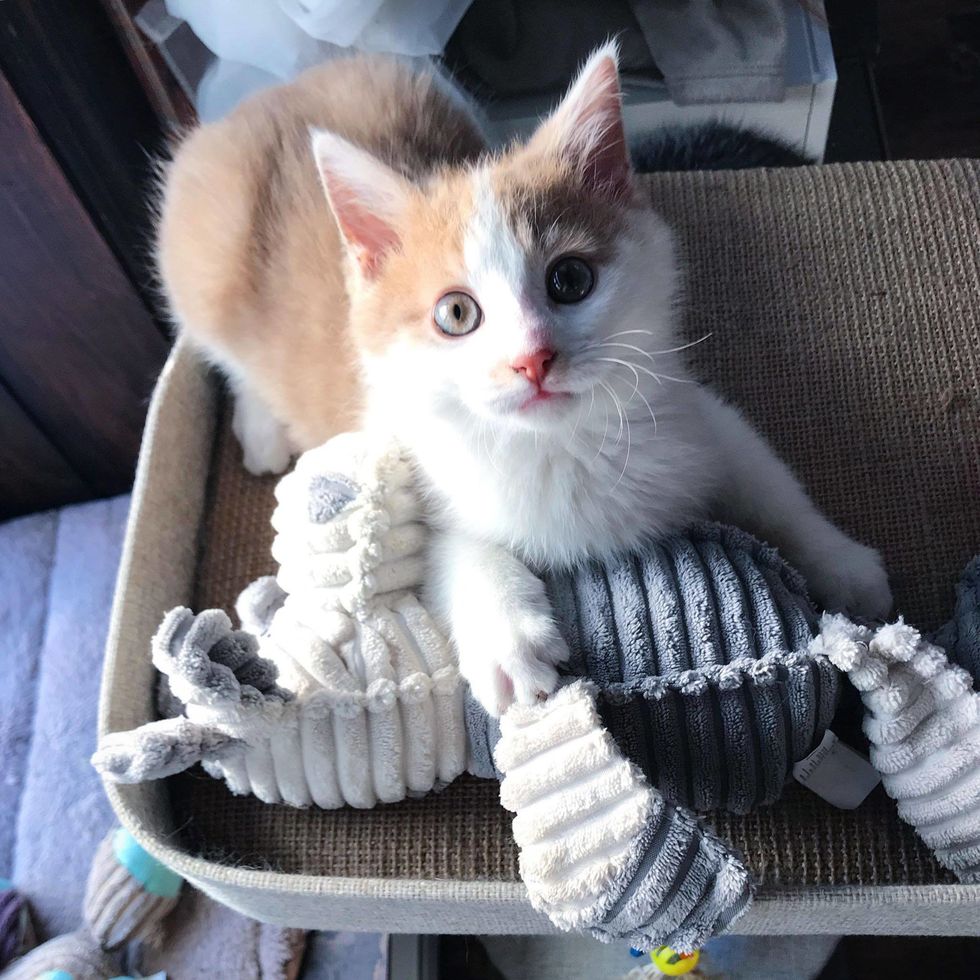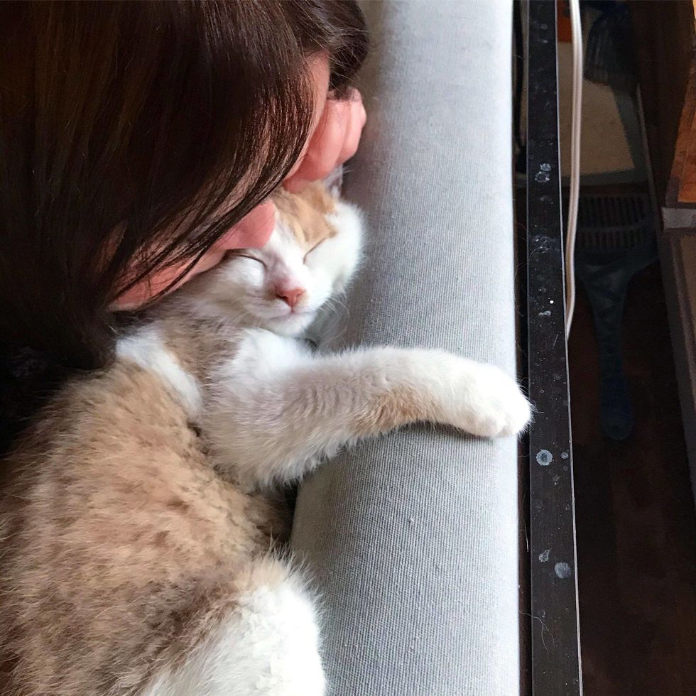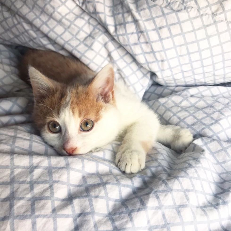 Despite her very best efforts to save them, one of the kittens lost her fight. The remaining ginger and white cat made it through the night and bounced back.