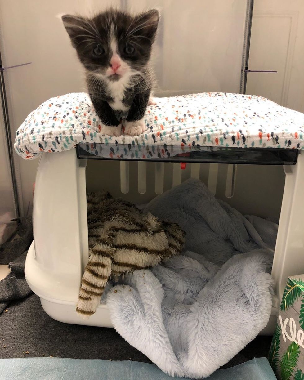 They rescued a little kitten who was found all alone and knew just the perfect friend to pair him with.