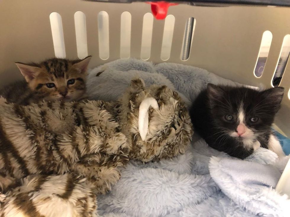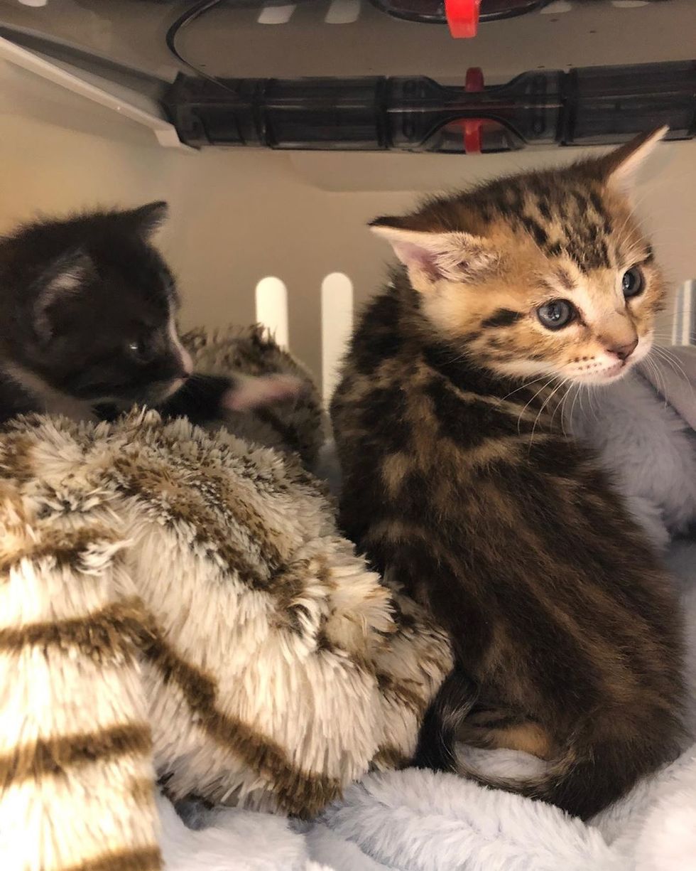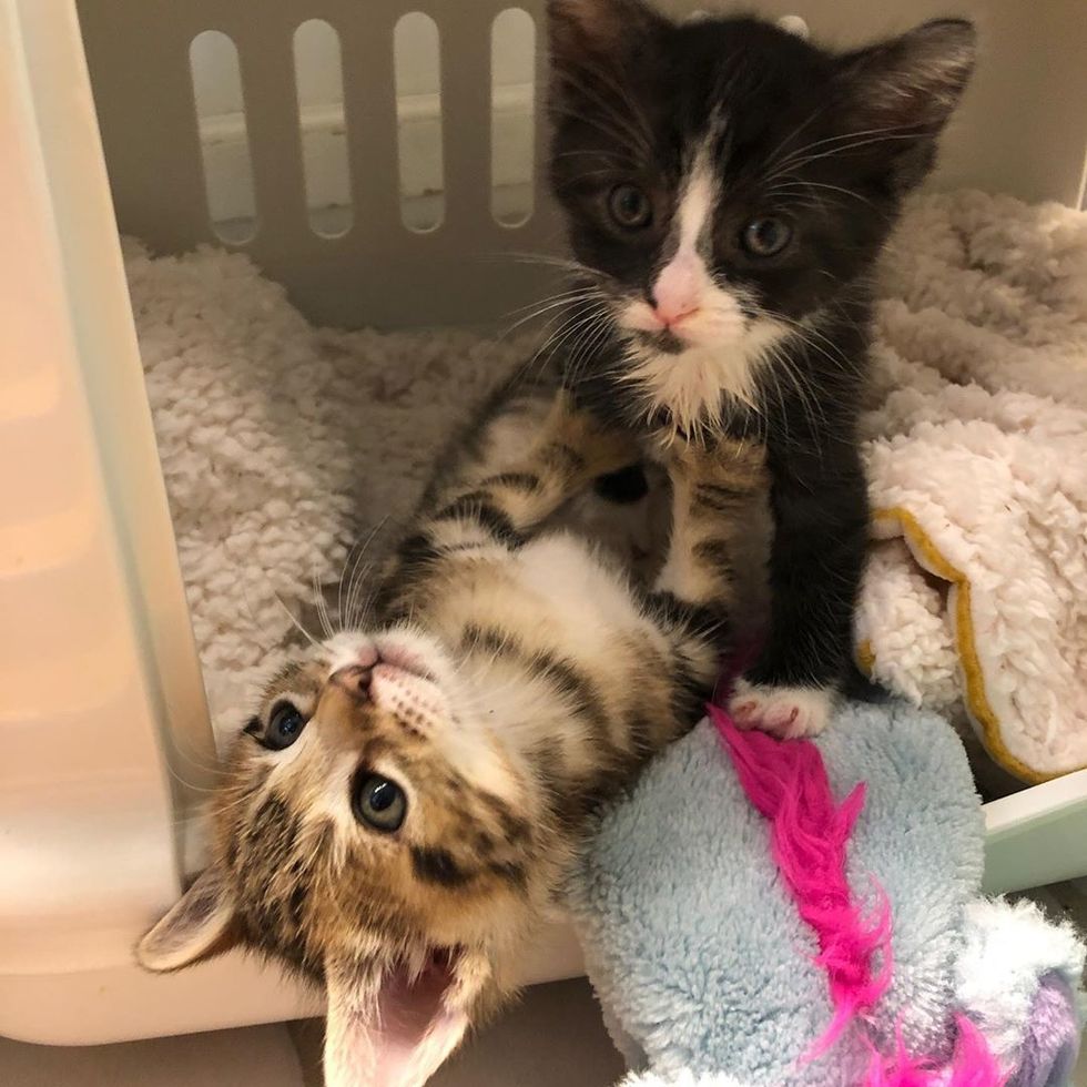 Both kittens were found without a mother, and both needed a friend. Being similar in age, the rescue decided they would be a good fit together.