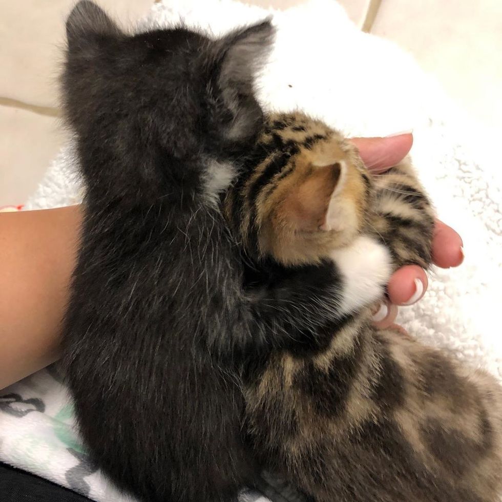 When their foster parents aren't available for cuddles, the two kittens always have each other to lean on.