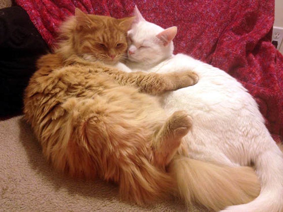 Pepper all grown up now. Not only did she find a forever home, but she also found a forever friend to cuddle with.