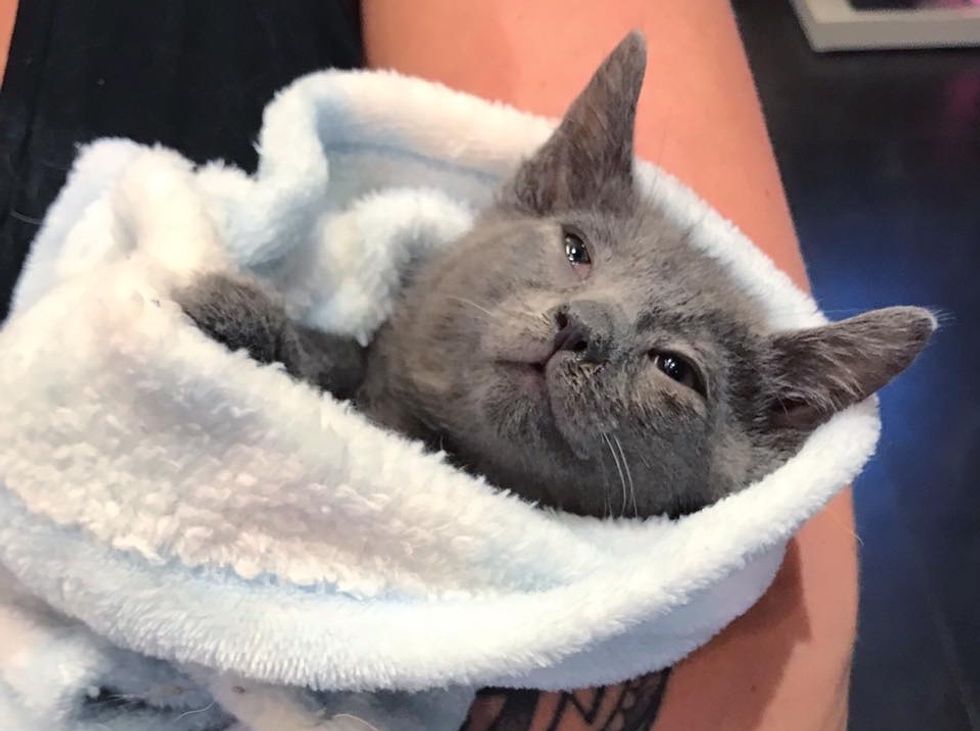 Chaos the kitty was born to a neighborhood stray. He was the only kitten that survived in his litter. Chatons Orphelins Montréal, a rescue group in Montreal, Canada, took him in so he could have chance at a better life.
