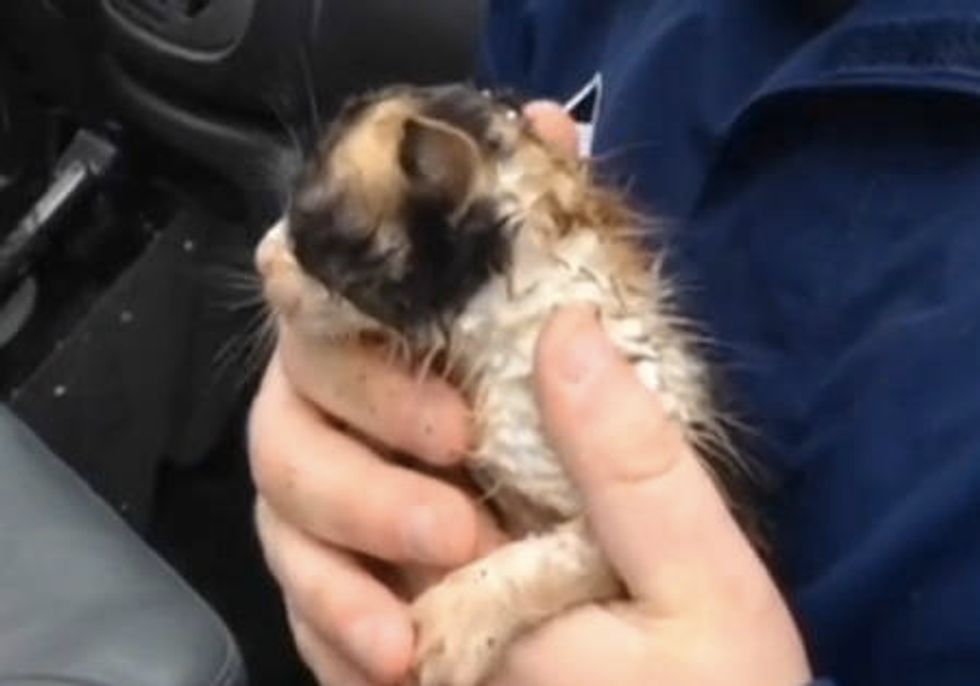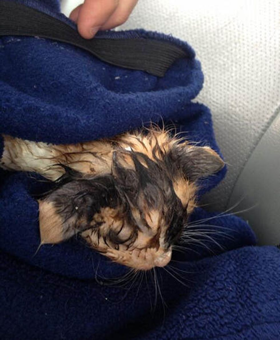 They promptly wrapped up the kitten in a jacket and kept her warm and dried her up.