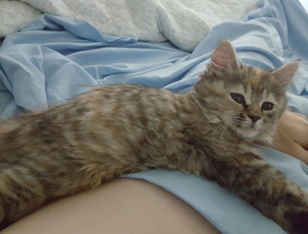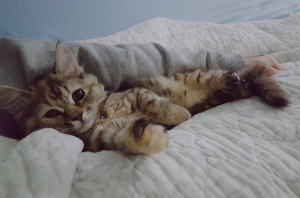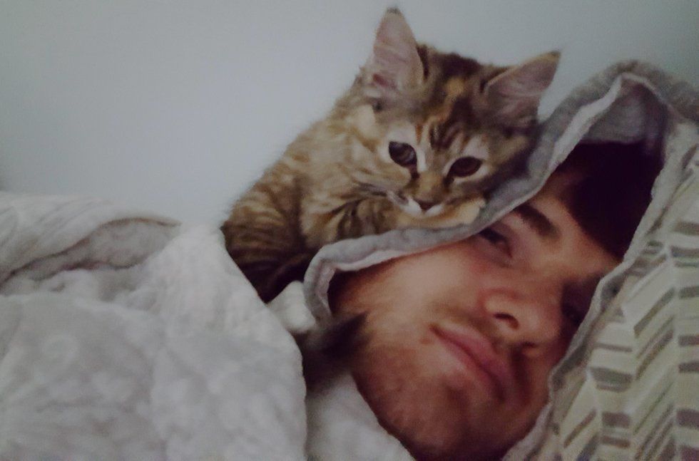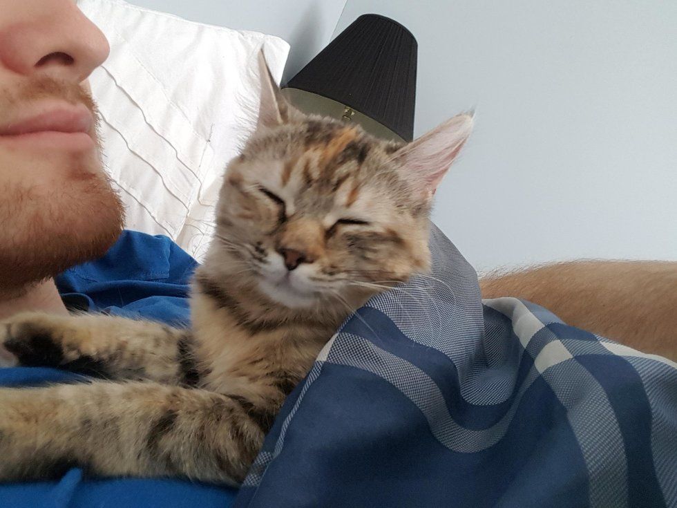 A man gave a kitten a home. He's been waking up to her cuddles every morning since.