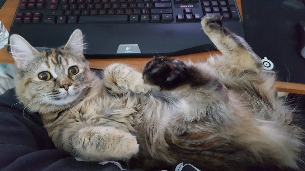 "If I were to meow at her then she would meow back. Gracie also always meows if I don't show her attention when she rubs against my legs or walks across my desk."