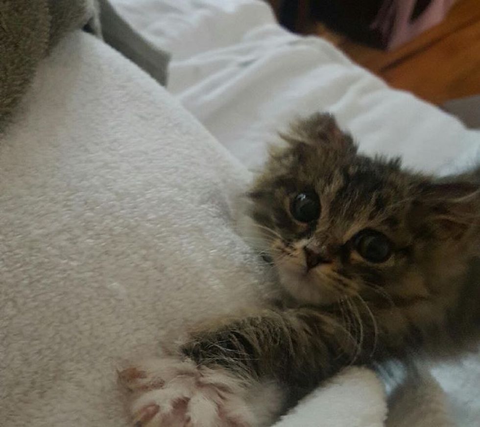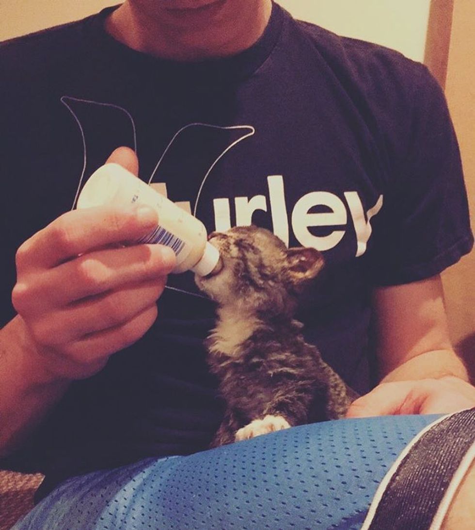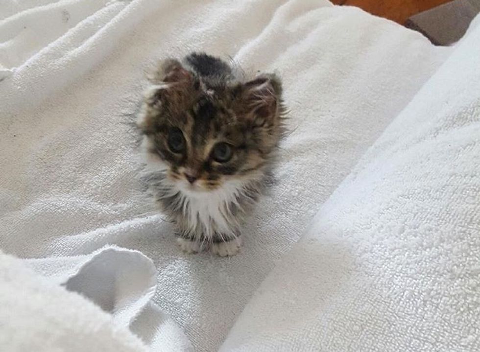 The kitten was put on several antibiotics, deworming and pain meds. "We bottle fed him for a little while and gave him wet food to eat. Even though he could eat dry food, we wanted him to get hydrated," Renee said.