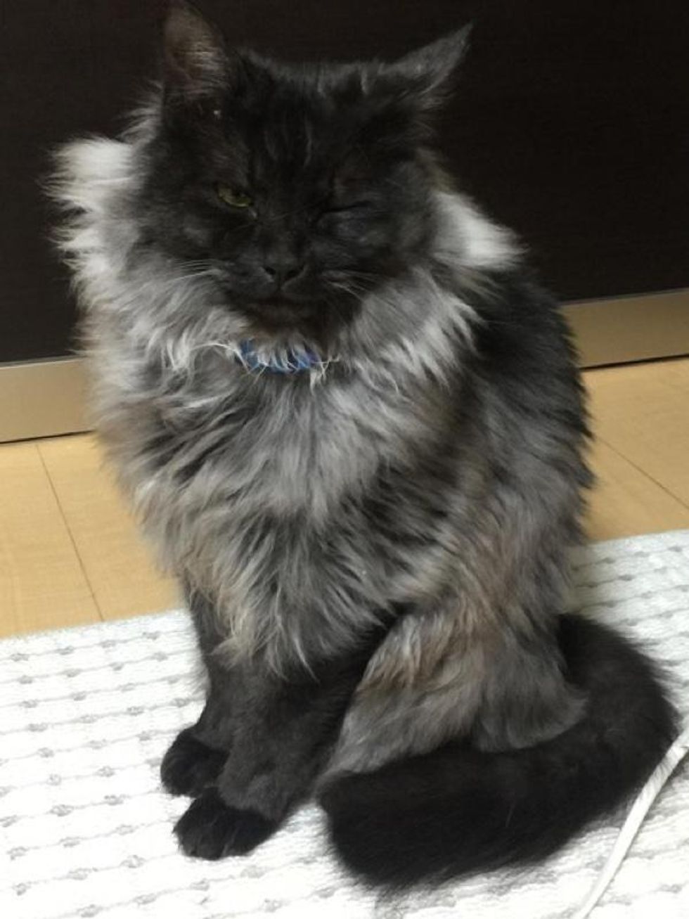 The tiny ball of fur has blossomed into a majestic cat with a glorious mane.