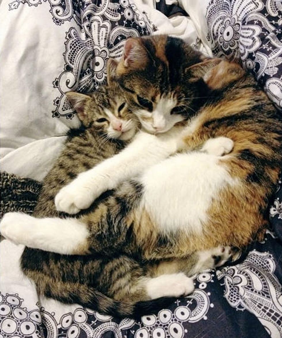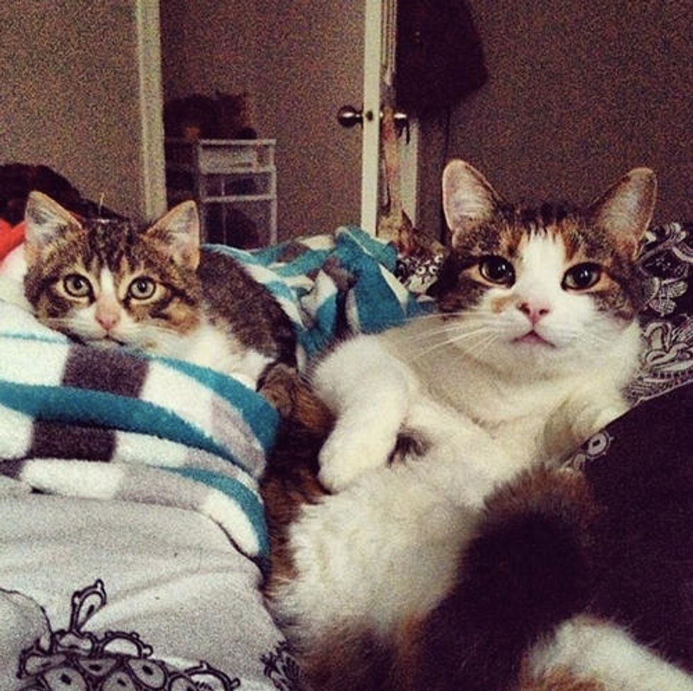 "I found Tev outside by the garbage cans stuck in a foot of snow and decided to take him in," said the human mom on her instagram. "Little did I know Ronni would take on the roll of being his new Mommy."