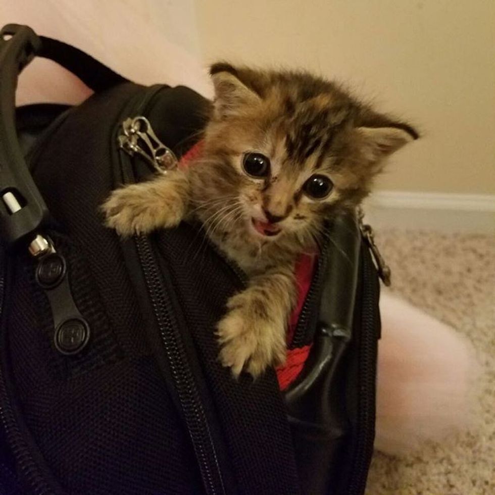 When a family was looking at rescue cats at a local PetSmart in Northwest Raleigh, North Carolina, they were introduced to a tiny 3-4 week-old orphaned kitten, who needed some extra TLC.