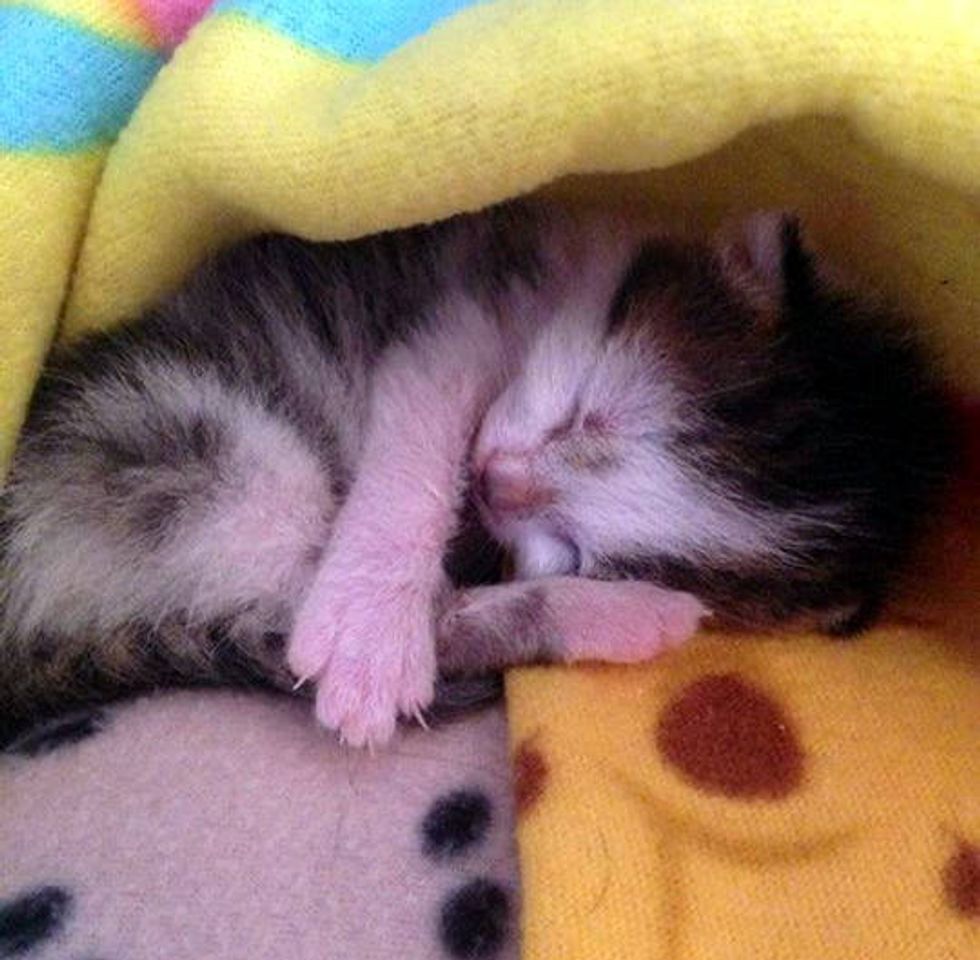 A tiny orphan kitten that was born in a van now got two unlikely moms.