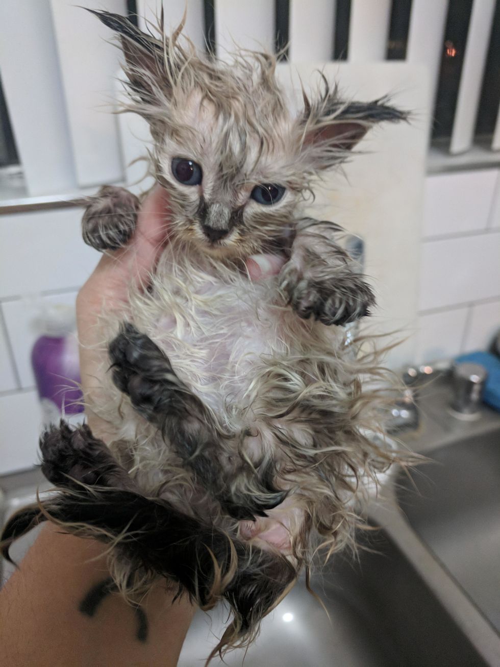 They gave her a much-needed flea bath with dawn dish soap. The little kitty felt so much better that she purred the loudest purrs.