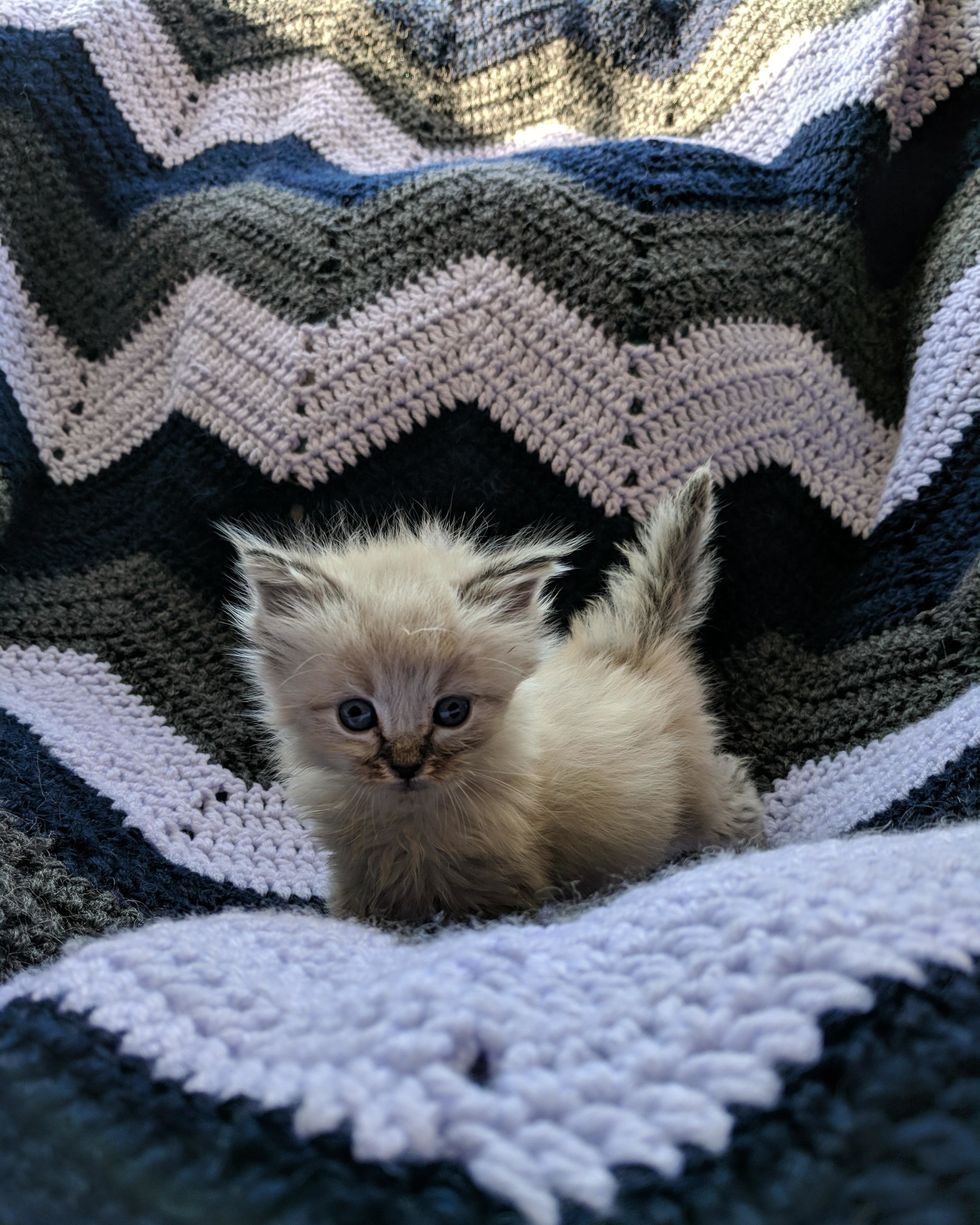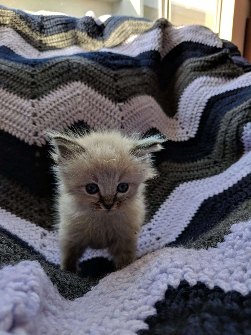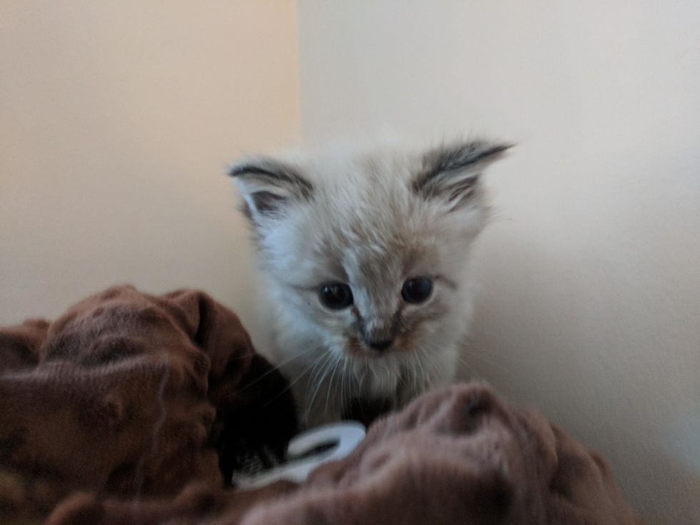 The little fluff ball is doing well in her foster home, eating like a champ. She's gaining weight quickly and getting more playful every day.