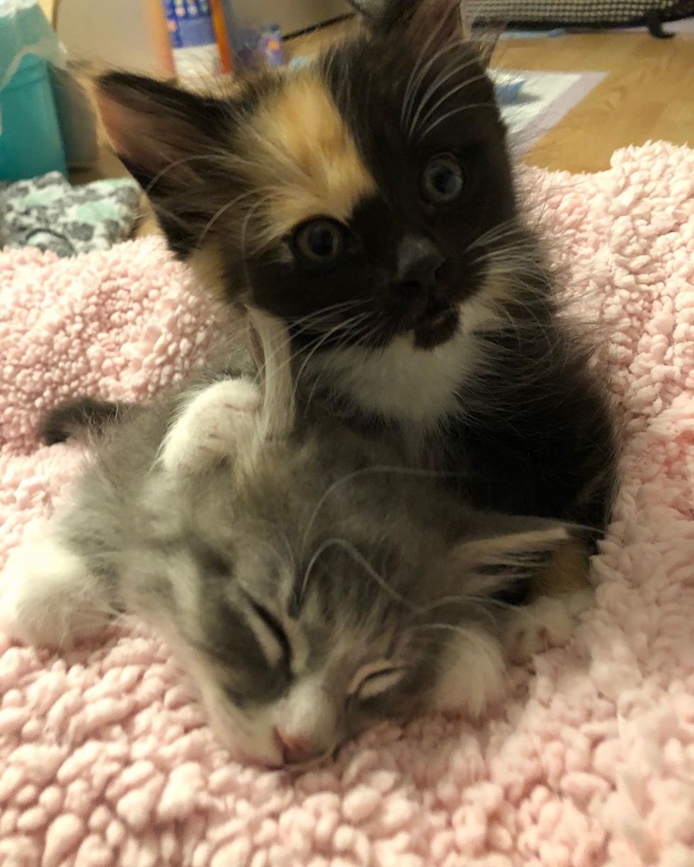 Laura Malone, director of Mini Cat Town, came across the kittens at the shelter, who were in need of a foster home. Mini Cat Town took them into their care and Laura stepped up to be their foster mom.