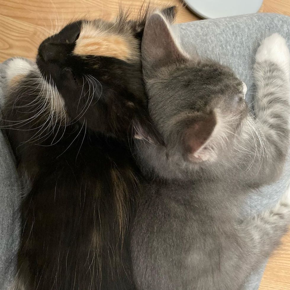 "Bowser and Tanooki finally figured out that they could share my lap," Laura said. "They stared right at me and purred."