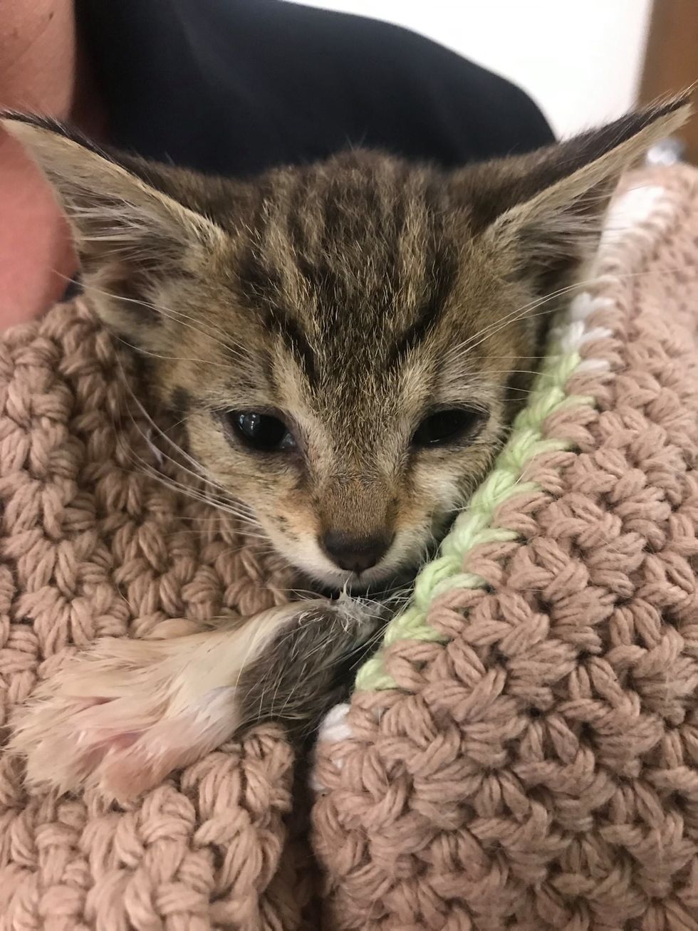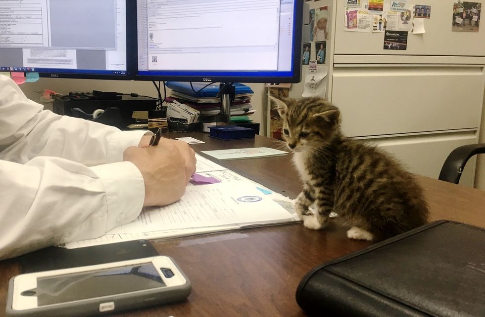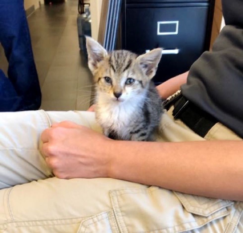 It was suggested by some that they should give up on the kitten as there weren't enough resources or money to "fix her". Police Chief Pat Reagan made the decision to help the 5-week-old tabby and take her to a local veterinary clinic.