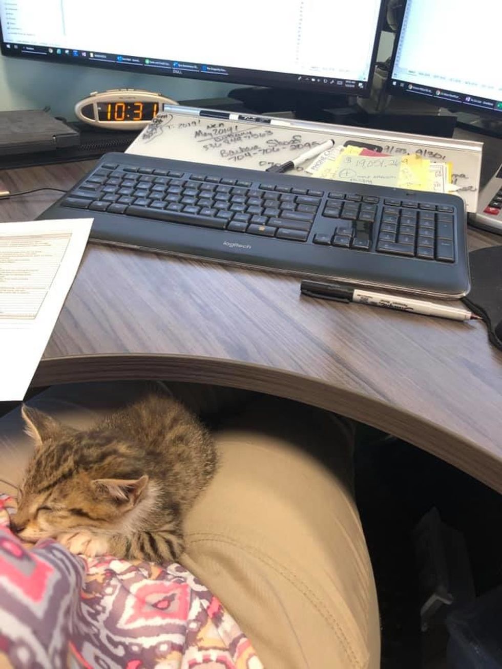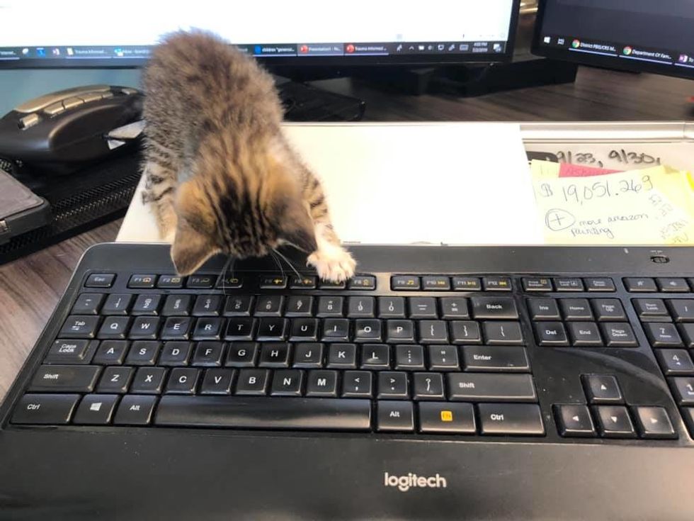 "Her favorite thing to do in the office so far is play around on my desk and play with whatever she comes across. She follows me when I go room to room," Brandi told Love Meow.