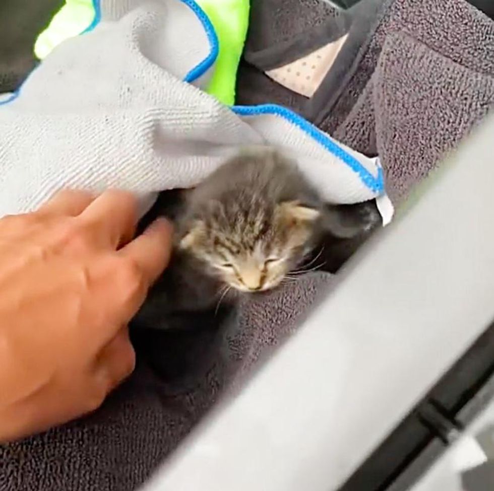She got in touch with her local animal rescue, Little Wanderers NYC, and found a fosterer who was equipped to care for the neonatal kitten. Shane then volunteered to transport the tabby to his foster home.