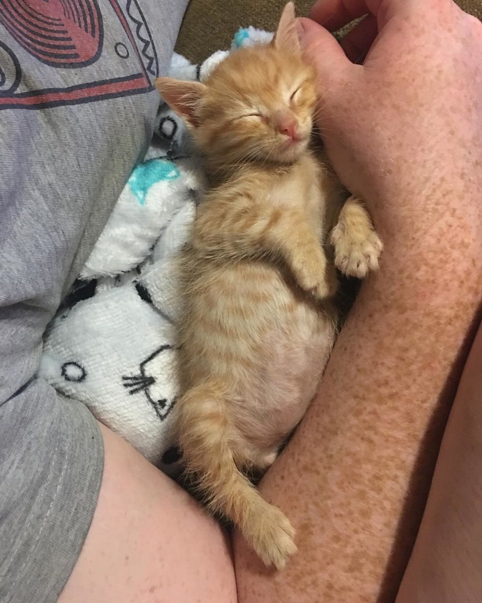 A few weeks later, the ginger boy was nursed back to health, and blossomed into a cuddle-bug.