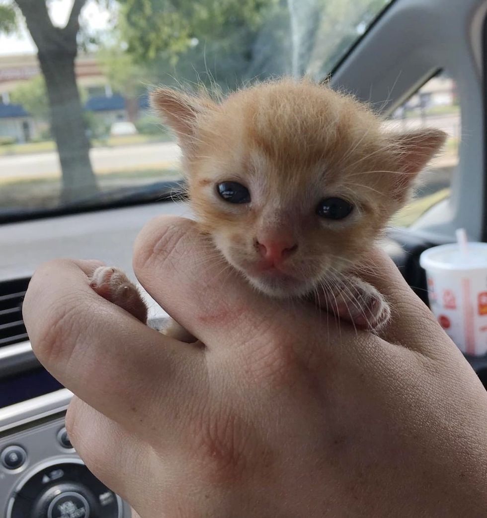 Rachael brought the kitten back to her car and kept him close to her. "I spoke softly to him the 20 or so minutes home. By the time we arrived, he was as calm as can be expected for such a harrowing ordeal."