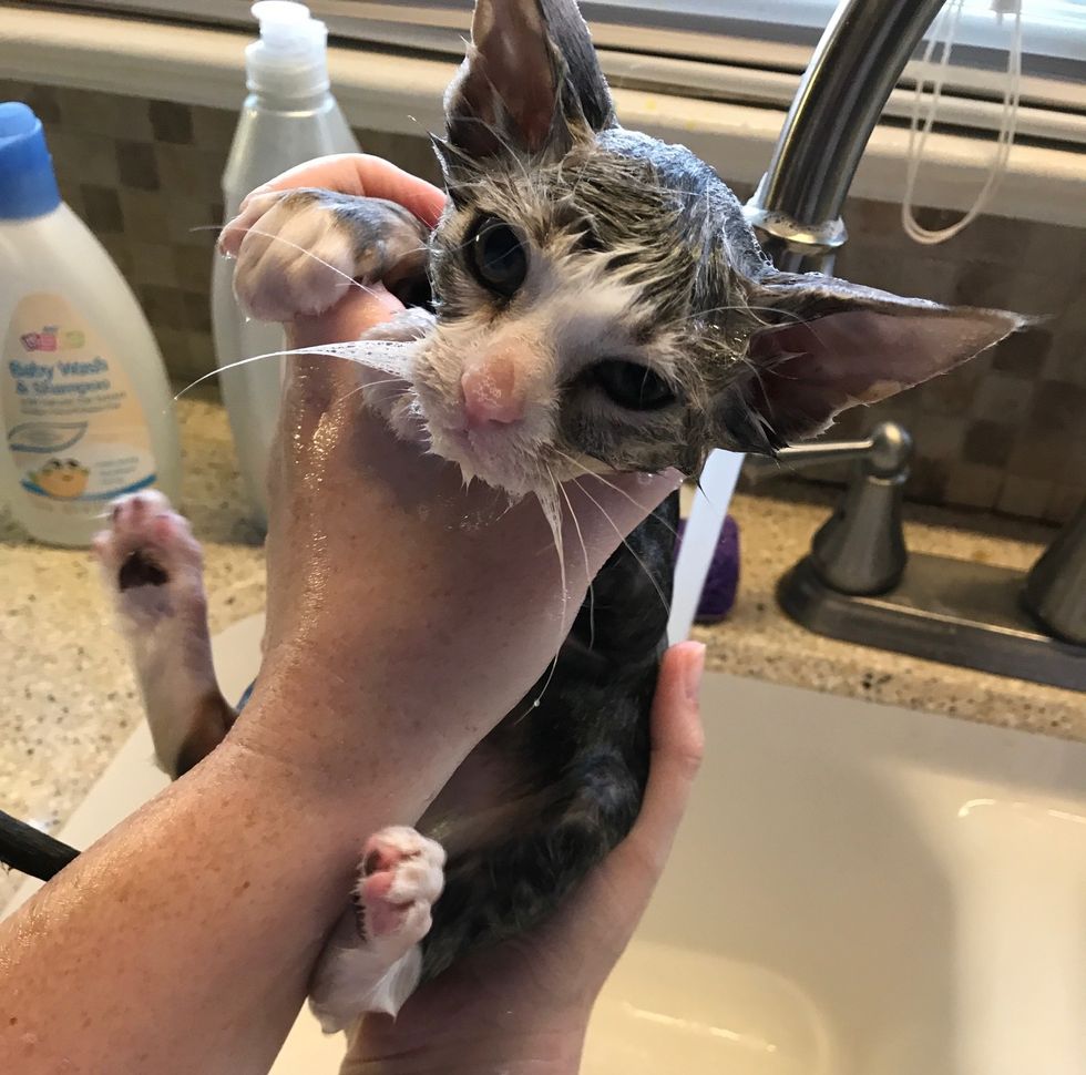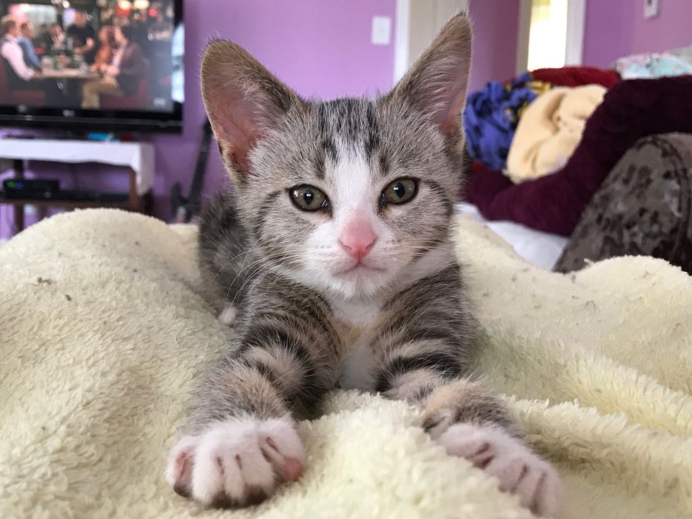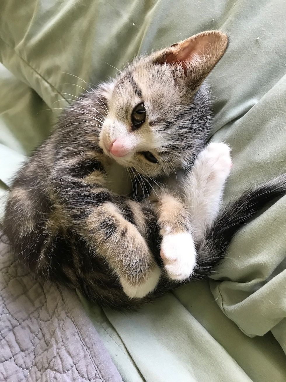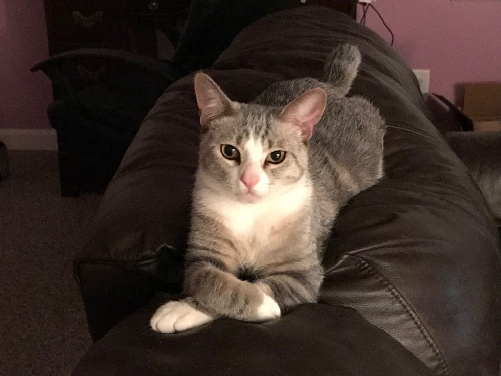 "He is also so sweet especially in the middle of the night that's when he will lick our faces and curl up next to us purring. He's definitely a mischievous kitty the majority of the time."