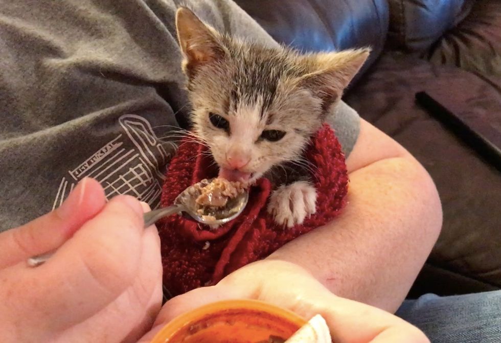 Dana went up a hill and her husband went down the hill, looking for the little stray who had run into the grass. "We both started calling 'here kitty kitty.' The grass was so tall that it was hard to see anything on the ground," Dana told Love Meow.