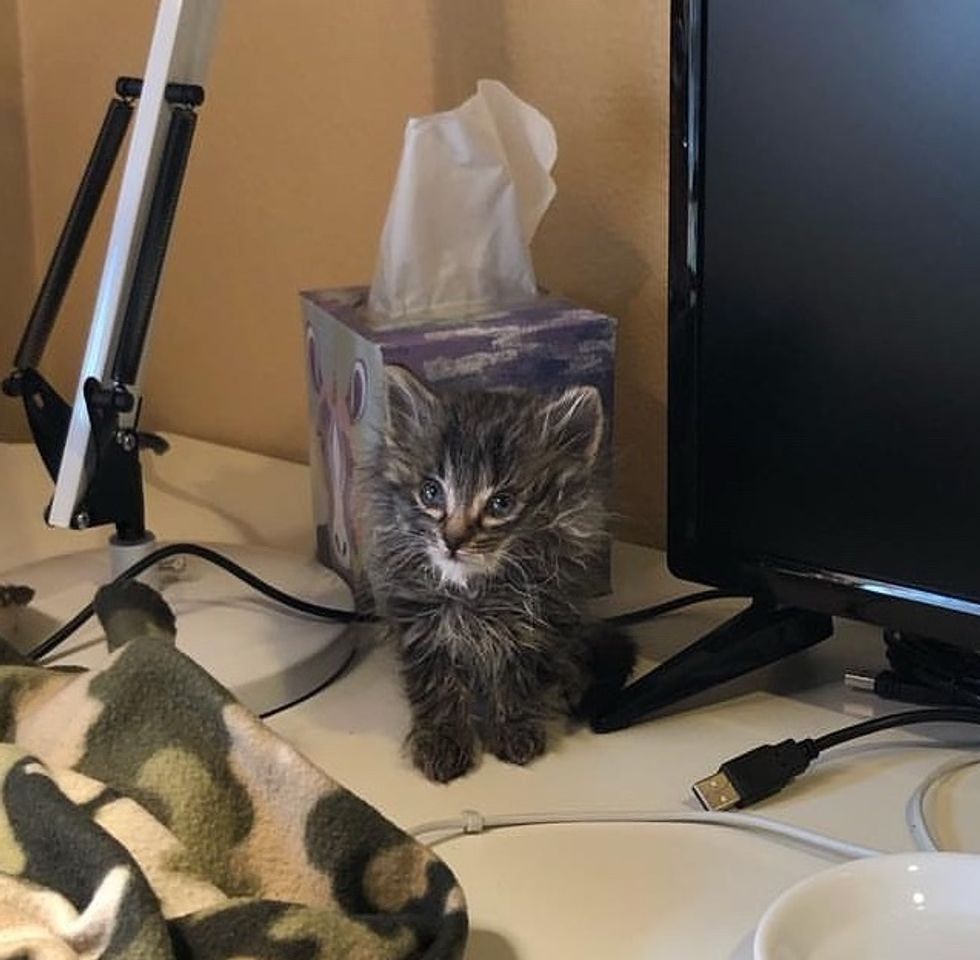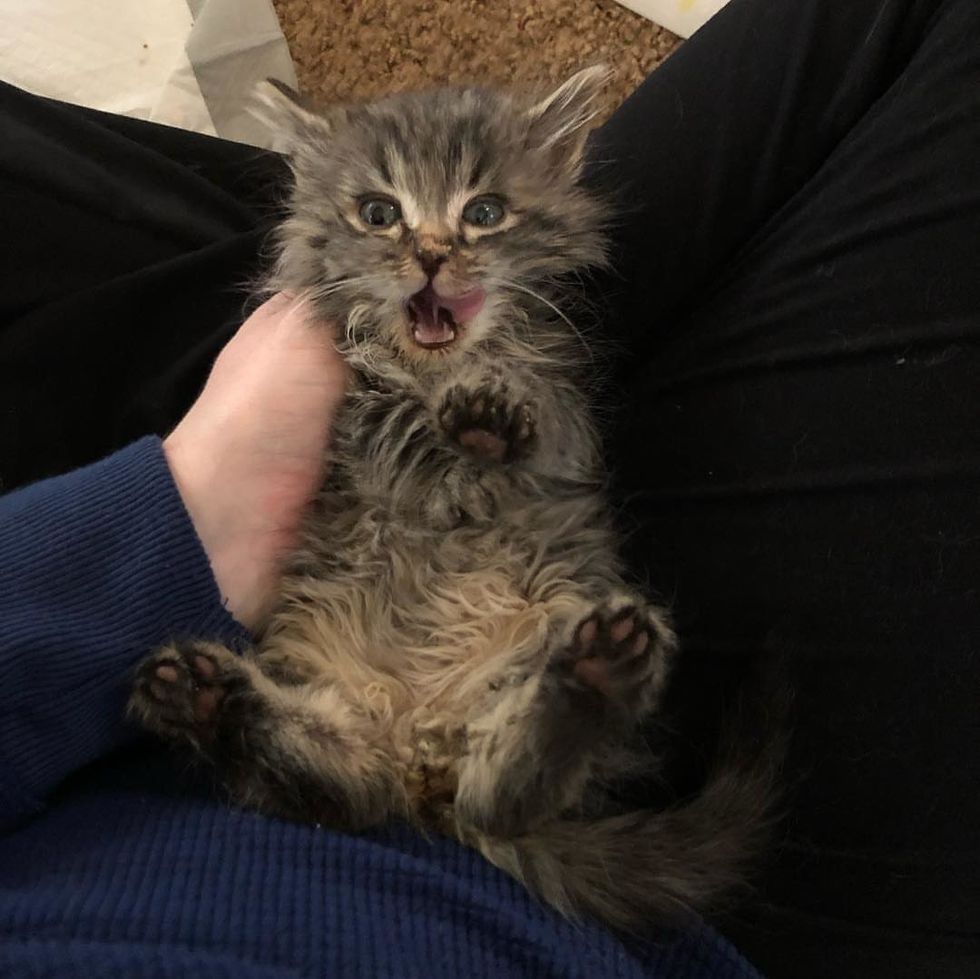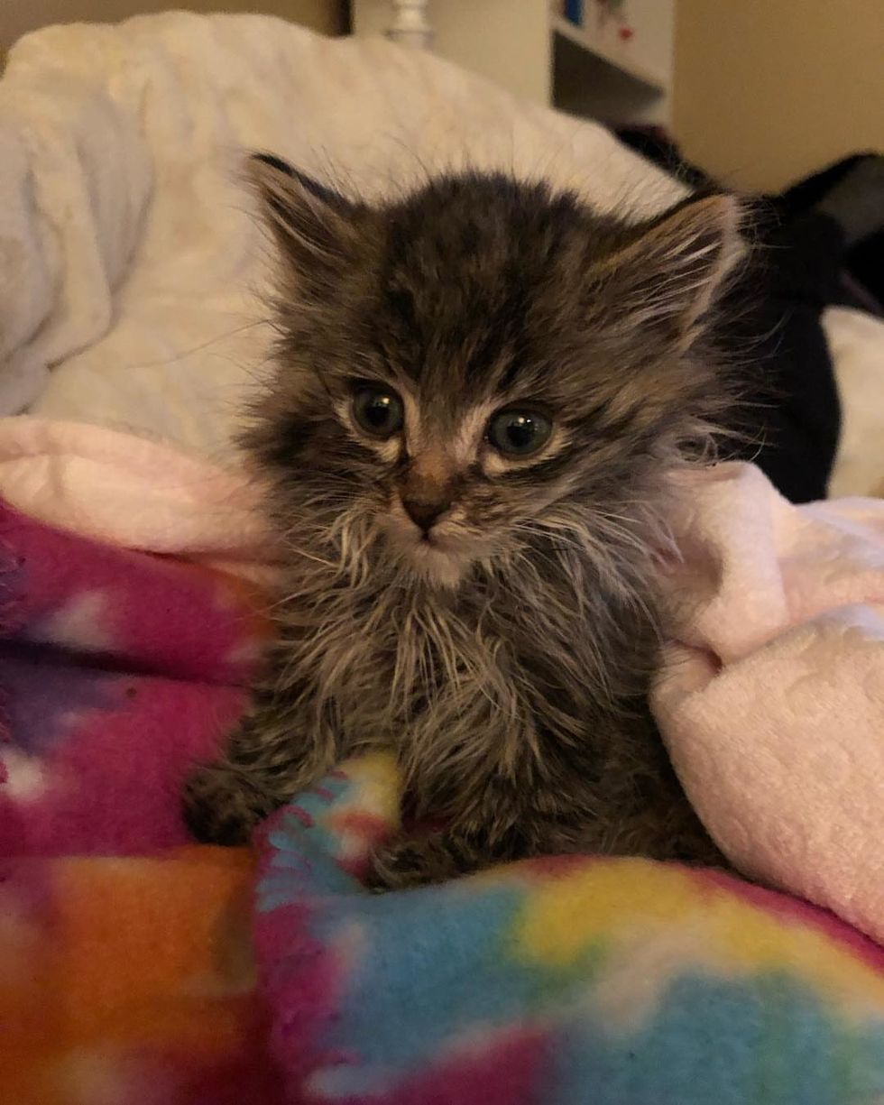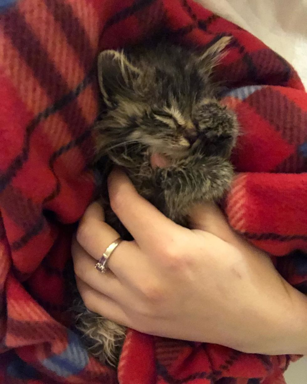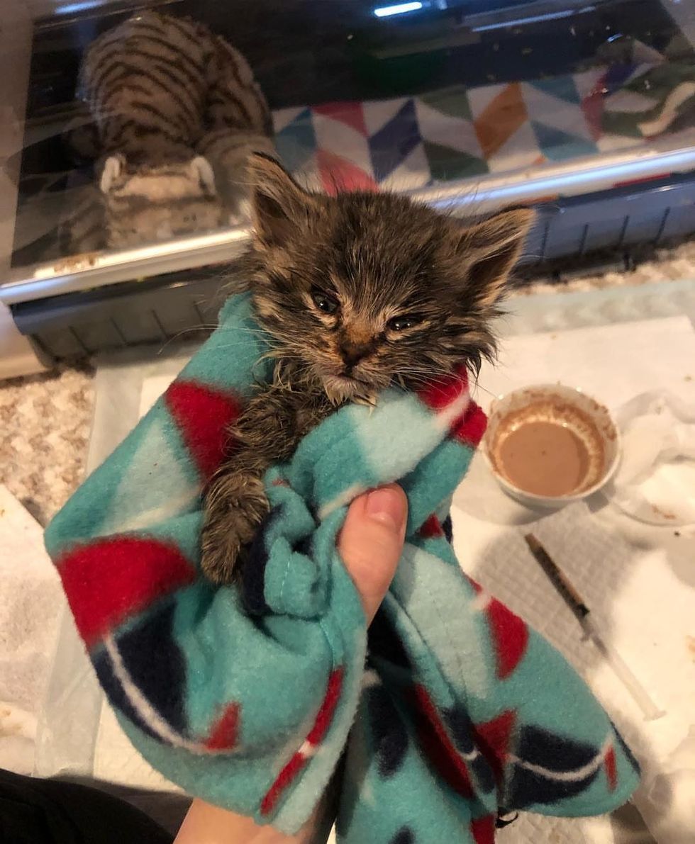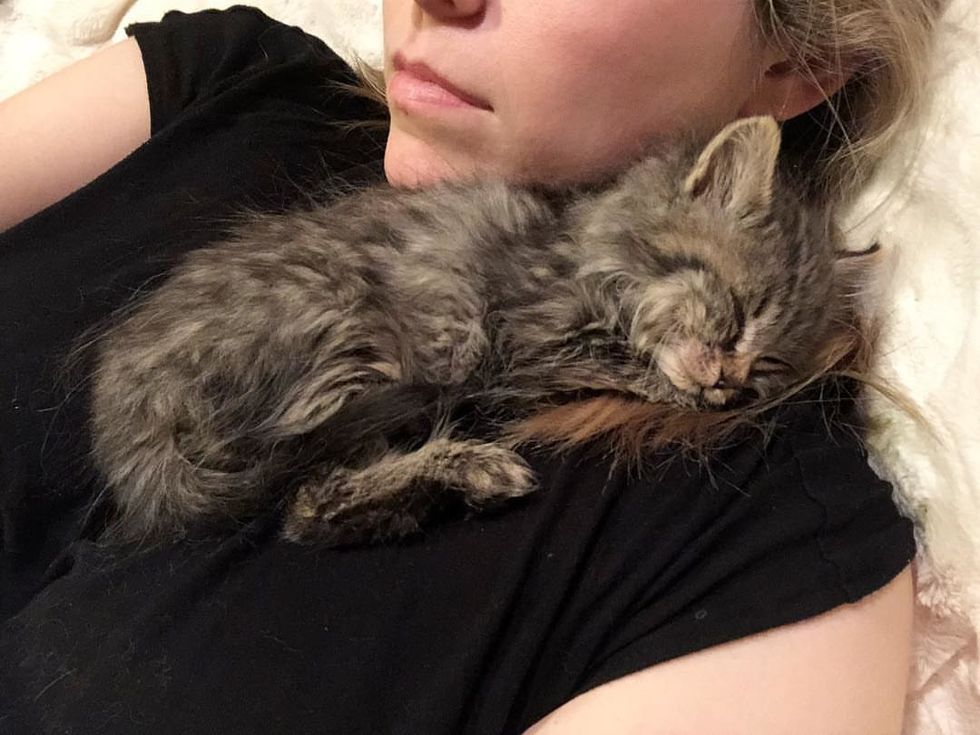 Ashley Morrison, a local cat rescuer, was contacted about the kittens needing foster care. The runt of the litter was in the worst shape and barely holding up.