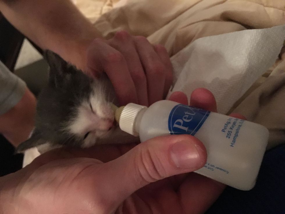 "Being a few weeks old, we had to bottle feed. He was less than half a pound when he was found... After a few meals, he was full of energy and climbing everywhere."