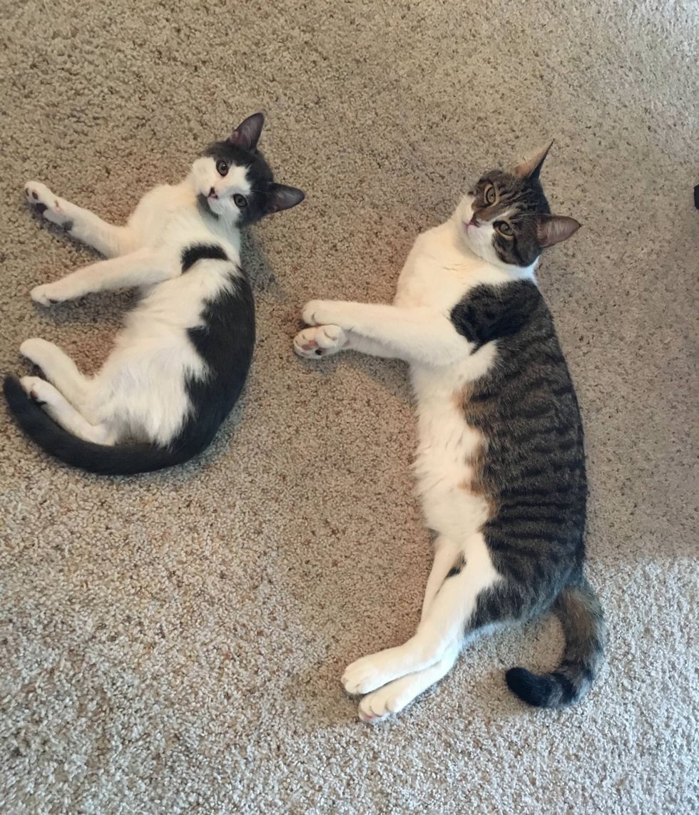Oscar is now five pounds, almost half the size of his big brother. The two are inseparable.