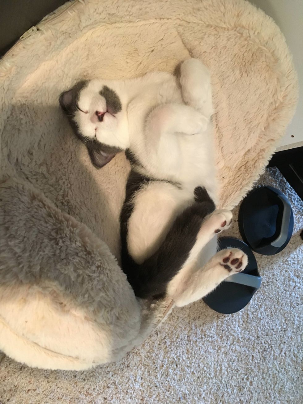 "He was found wandering around a warehouse in central Florida where my fiancé works," imgur user awrigz told Love Meow. "(He was) only three weeks old, all alone."