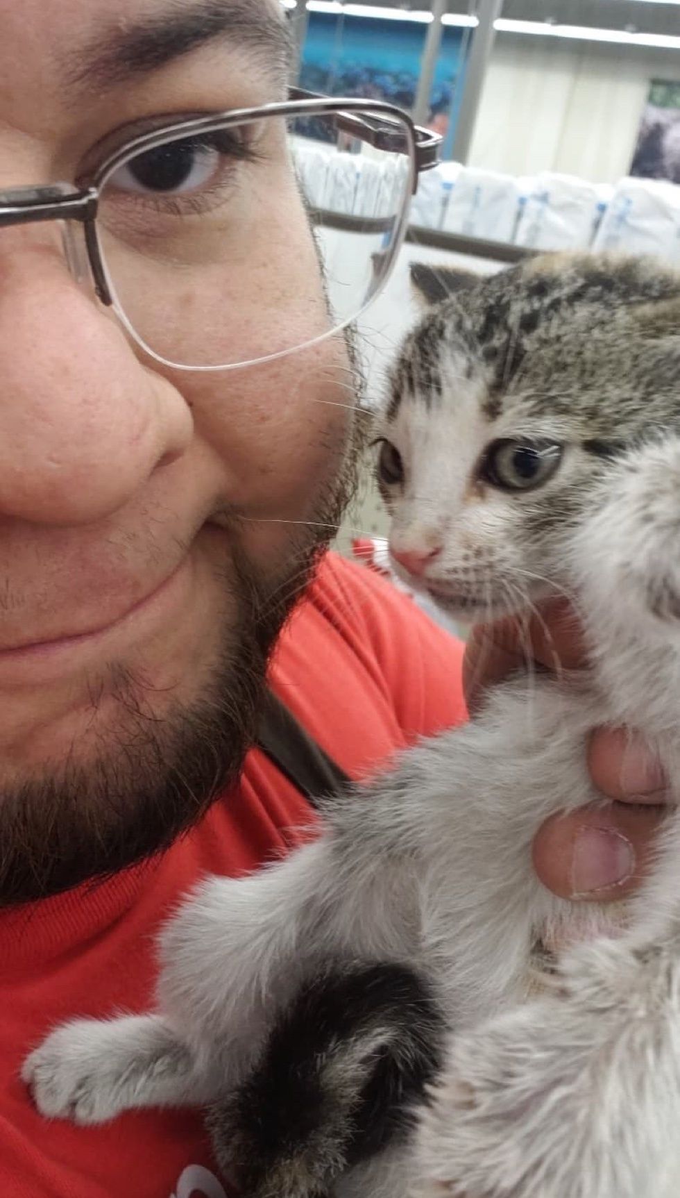 On August 13, a young woman walked into the Petco on Friant with a little kitten. "She asked me if I could help her with the new kitten that she had found," Gilbert Hinojosa, the manager of the store, told Love Meow.