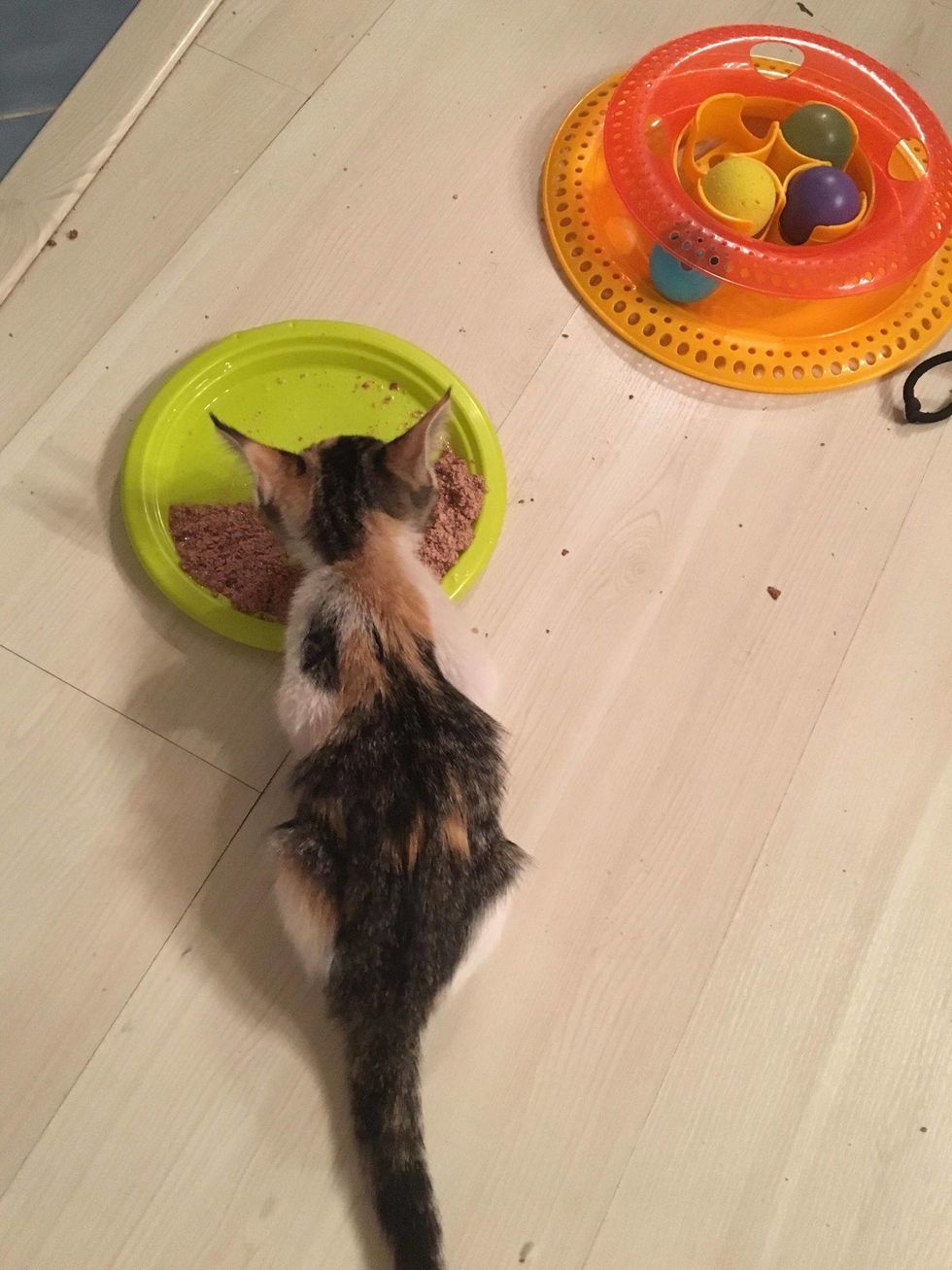 Gillie was a bit shy when she first arrived, but the sweet calico couldn't resist the food and all the soft things. "After a bath and food, she was looking much better," Margaret added.