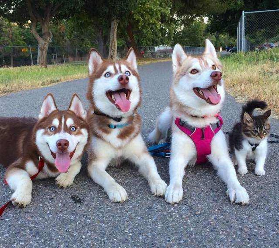 Rosie the rescue kitty was saved by a husky who changed her life forever! Now the kitty thinks she's part husky and is living her life in a pack with her canine buddies.