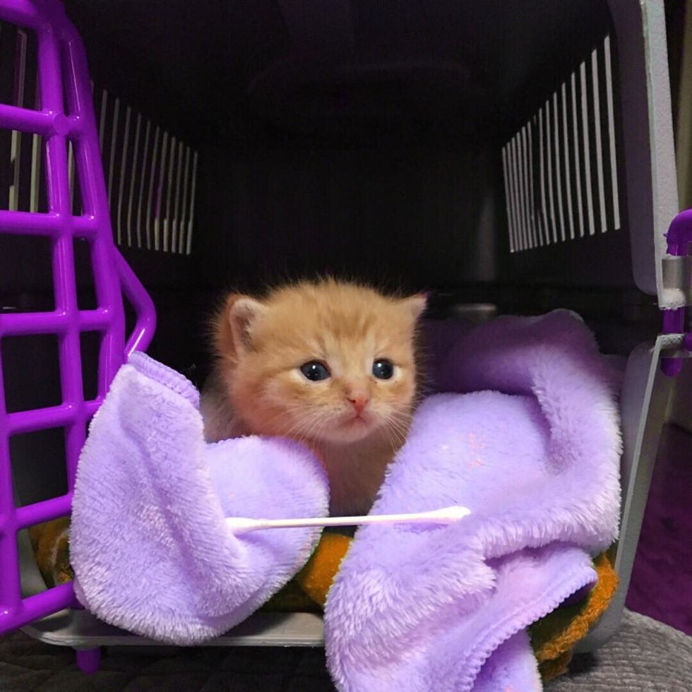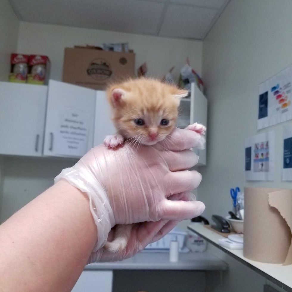 Without a mother in sight, the kitten was taken to a local animal shelter in Montreal, Canada. The shelter didn't have the resources to bottle feed a young kitten her age so staff reached out to Chatons Orphelins Montréal for help.
