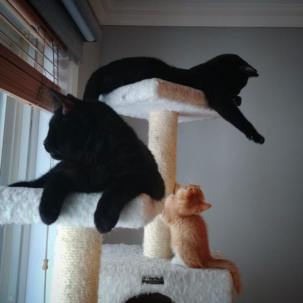 Lola enjoys playing with older kitties and learning all sorts of skills from them. When they perch on a cat tree, she follows suit.