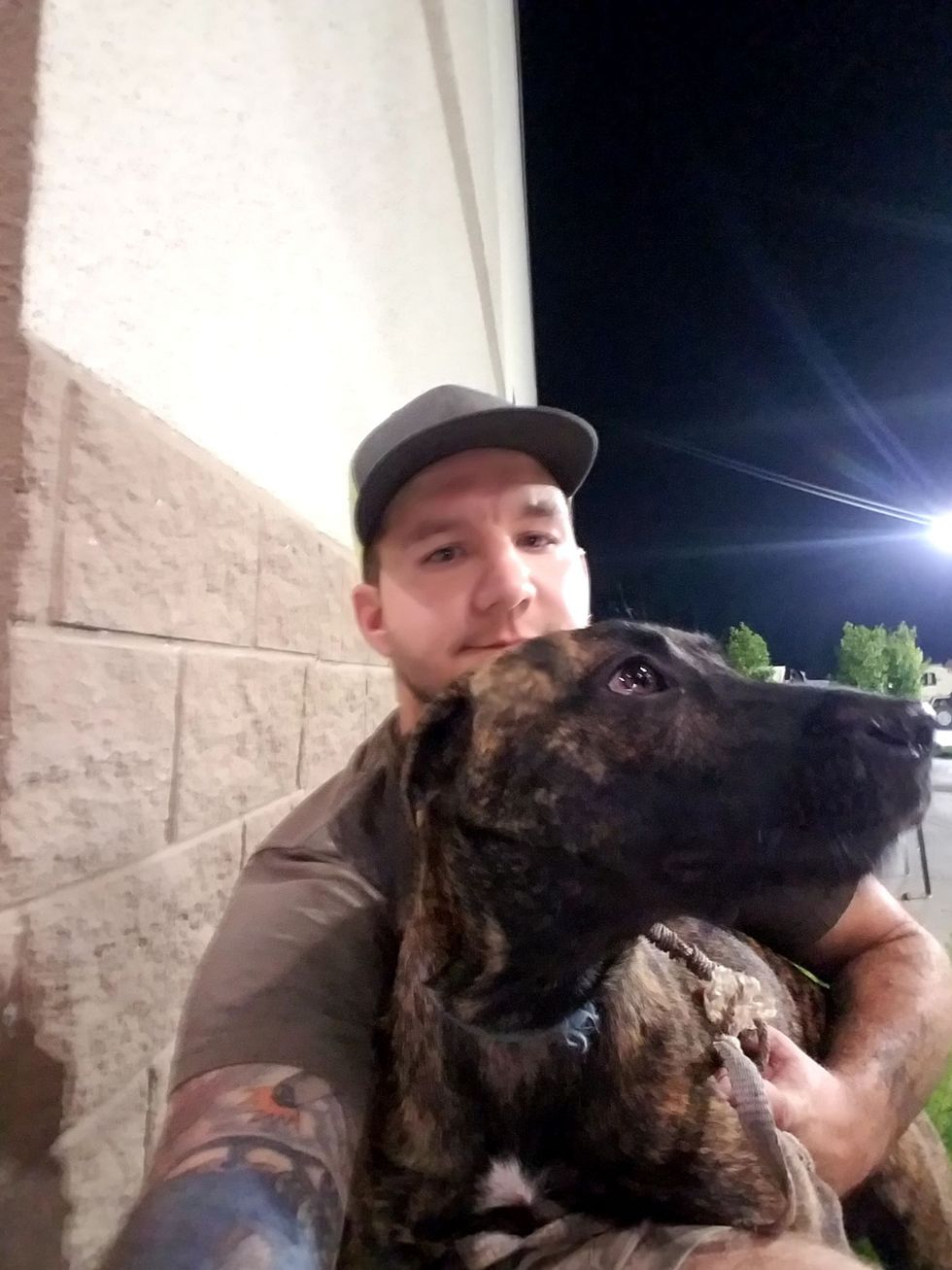 The sweet canine is now being cared for by Gregory's Mother-in-Law.
