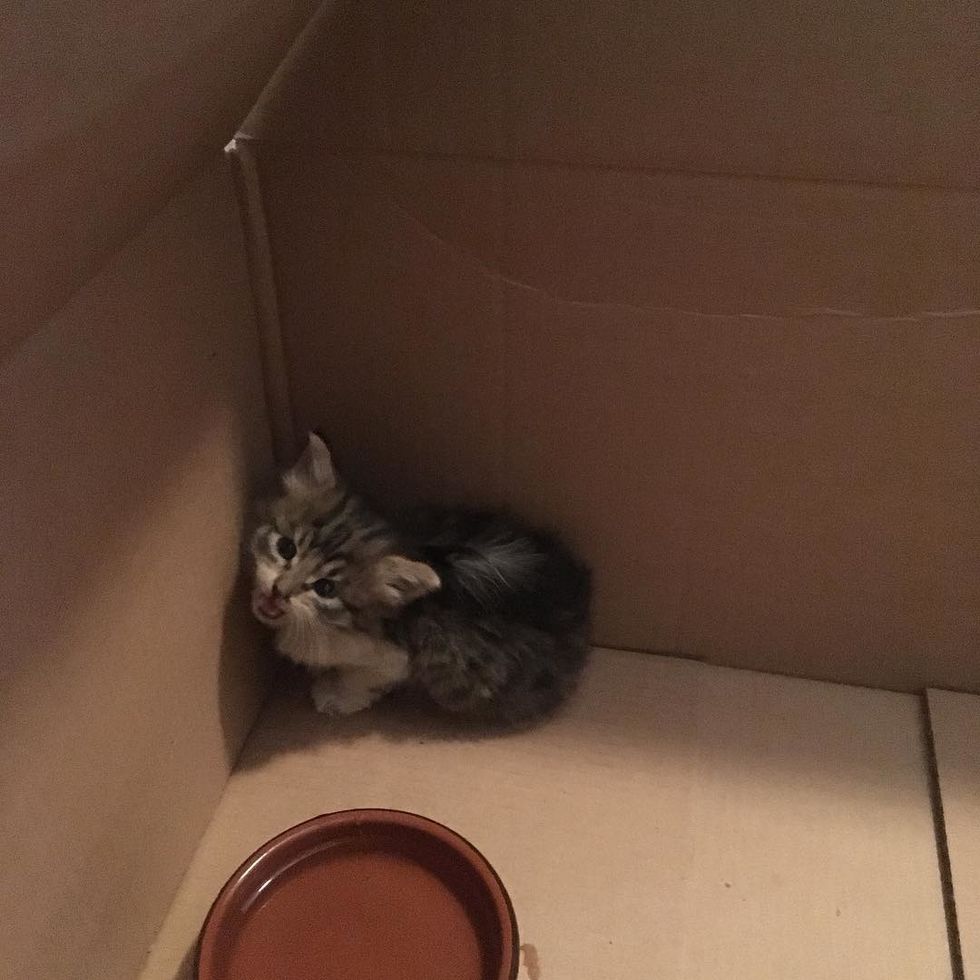 "I went to tell my boss I needed to go home for a while because I had a kitten in a box at the front desk. Being an animal lover herself, she told me to go home and take care of the kitten," Lisa said.