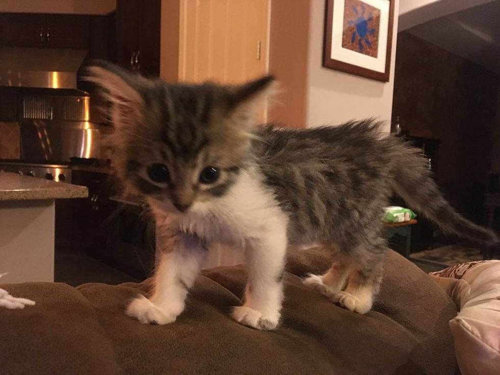 A year ago, a tiny kitten was spotted running around the parking lot at a facility in Arizona. The kitty was frantically trying to hide from everyone there.
