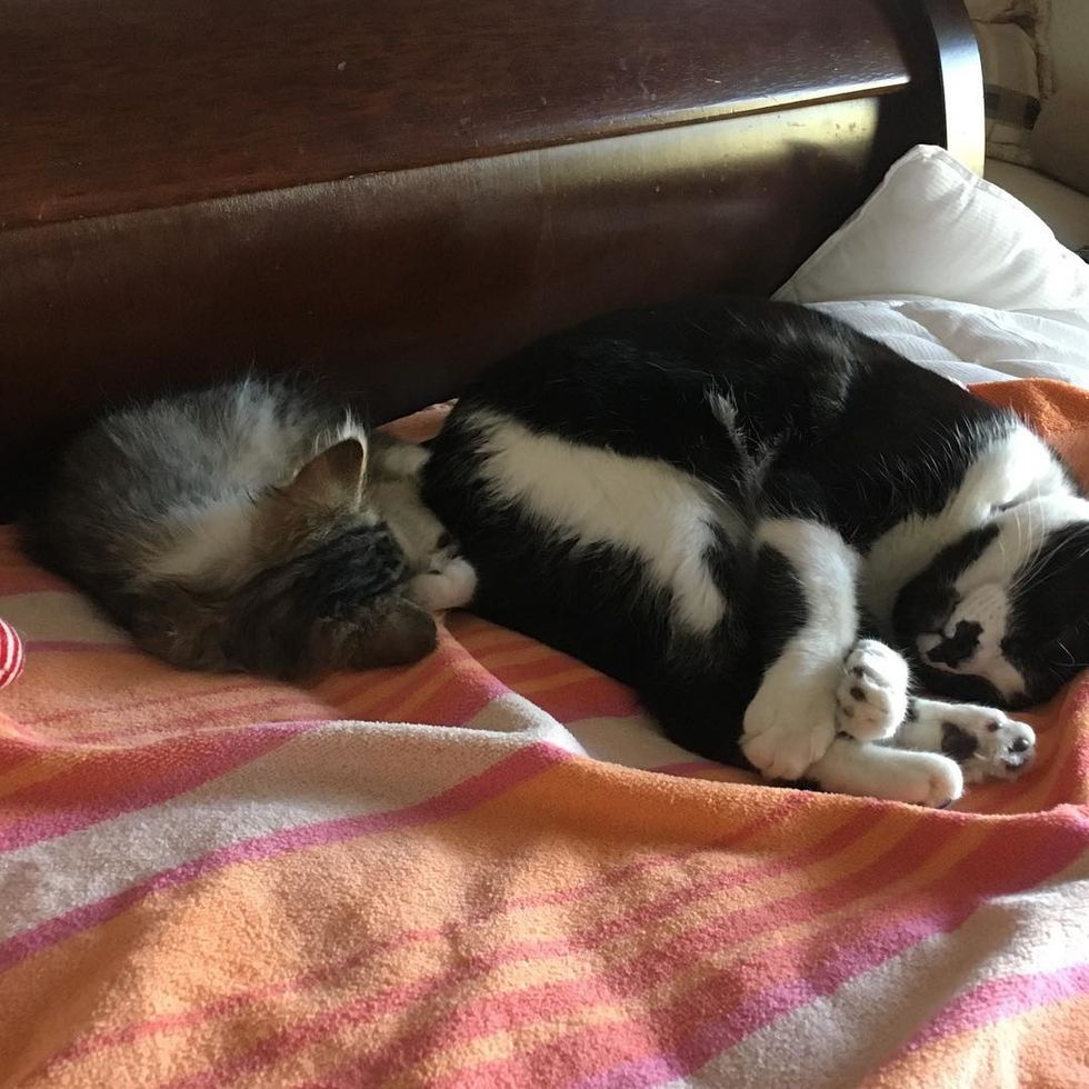 "They are best buddies for grooming, napping and playing. Mayday also won over Calamity, who is seven."