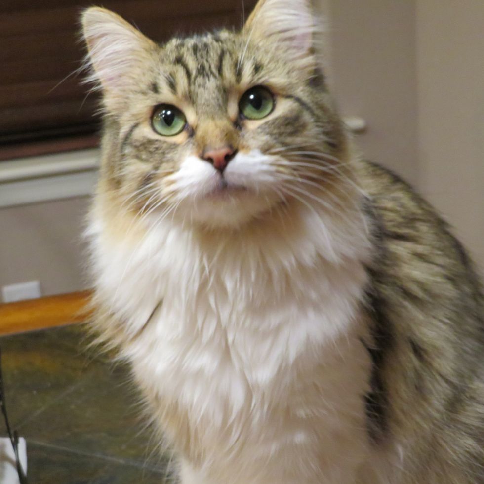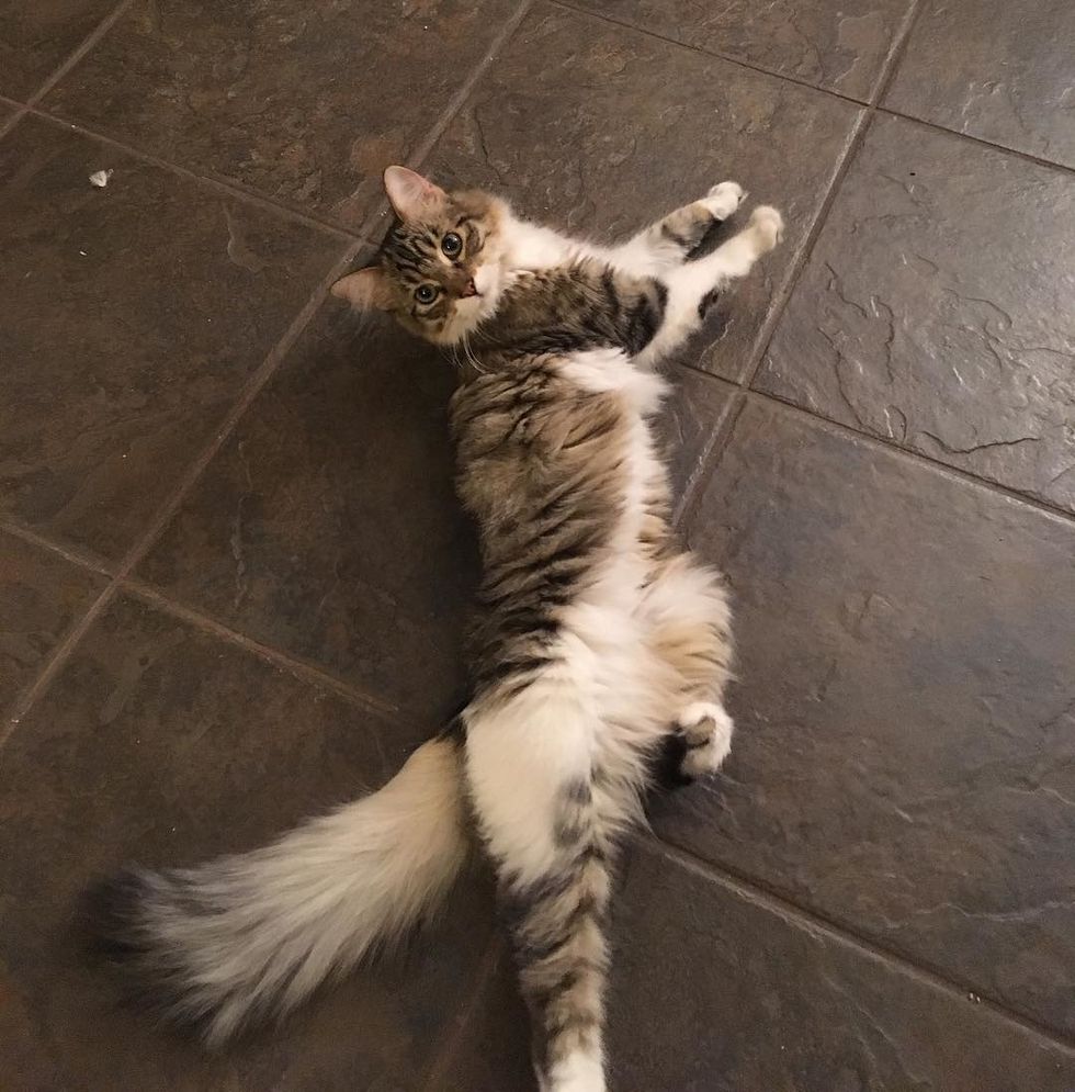 A week ago, sweet Mayday turned one. She's blossomed into a beautiful cat with a long, fluffy tail to be marveled.