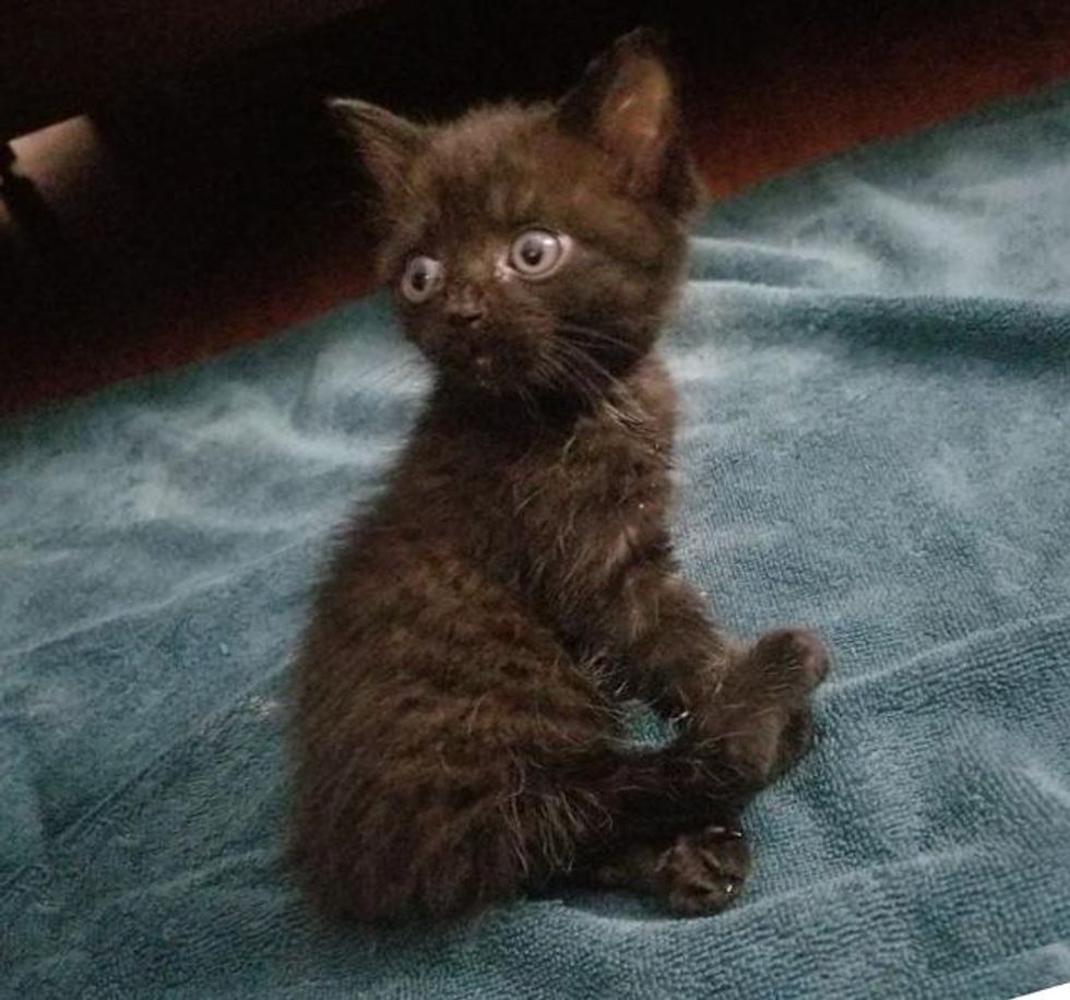 A kitten found his way to the perfect home and transformed into a feisty, doe-eyed cat.