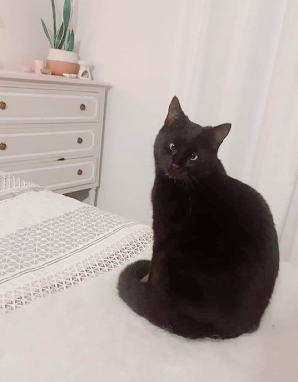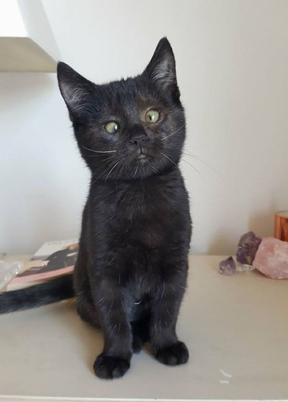 The kitten who was found in the backyard, has blossomed into a gorgeous cat with a pair of perfect crossed eyes.